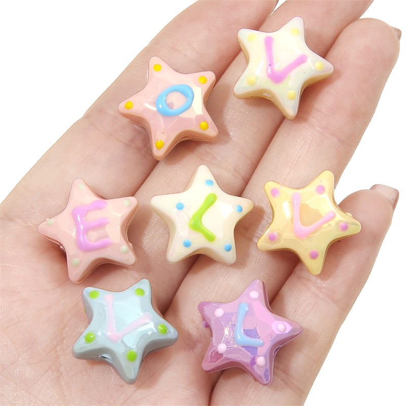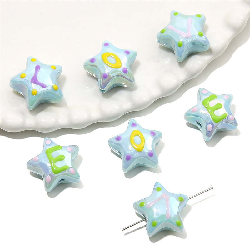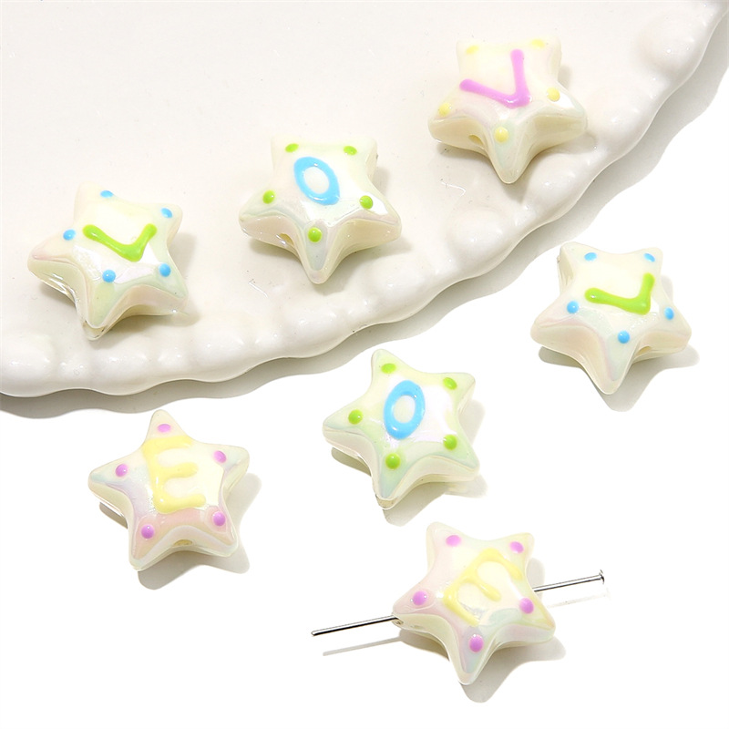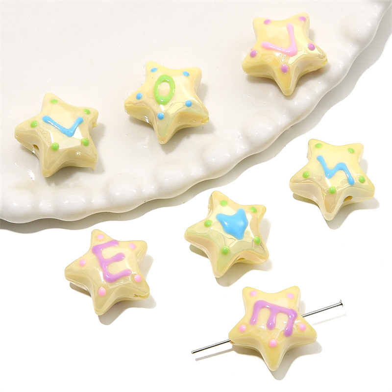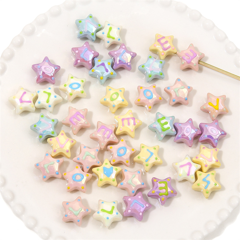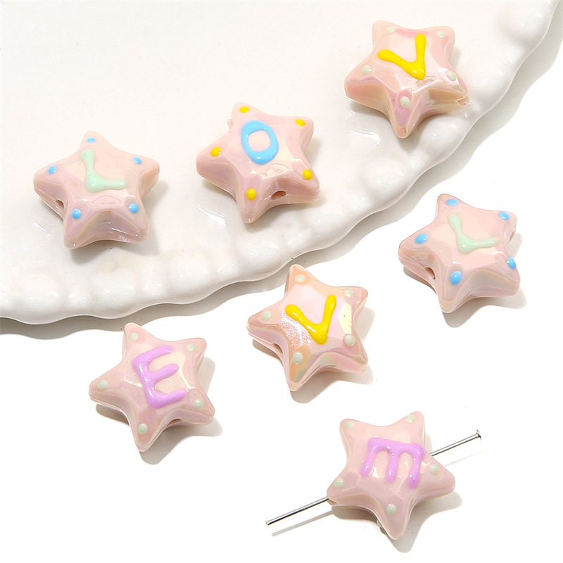アクリル油実色アルファベット五角星珠手作りdiyビーズブレスレットネックレスアクセサリー材料