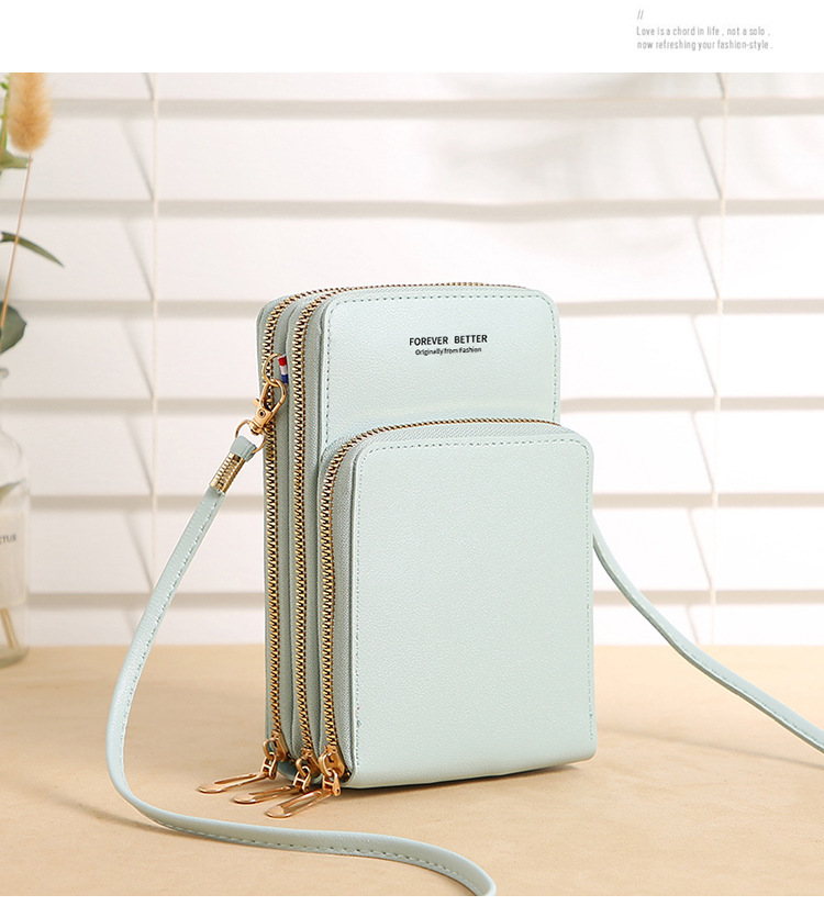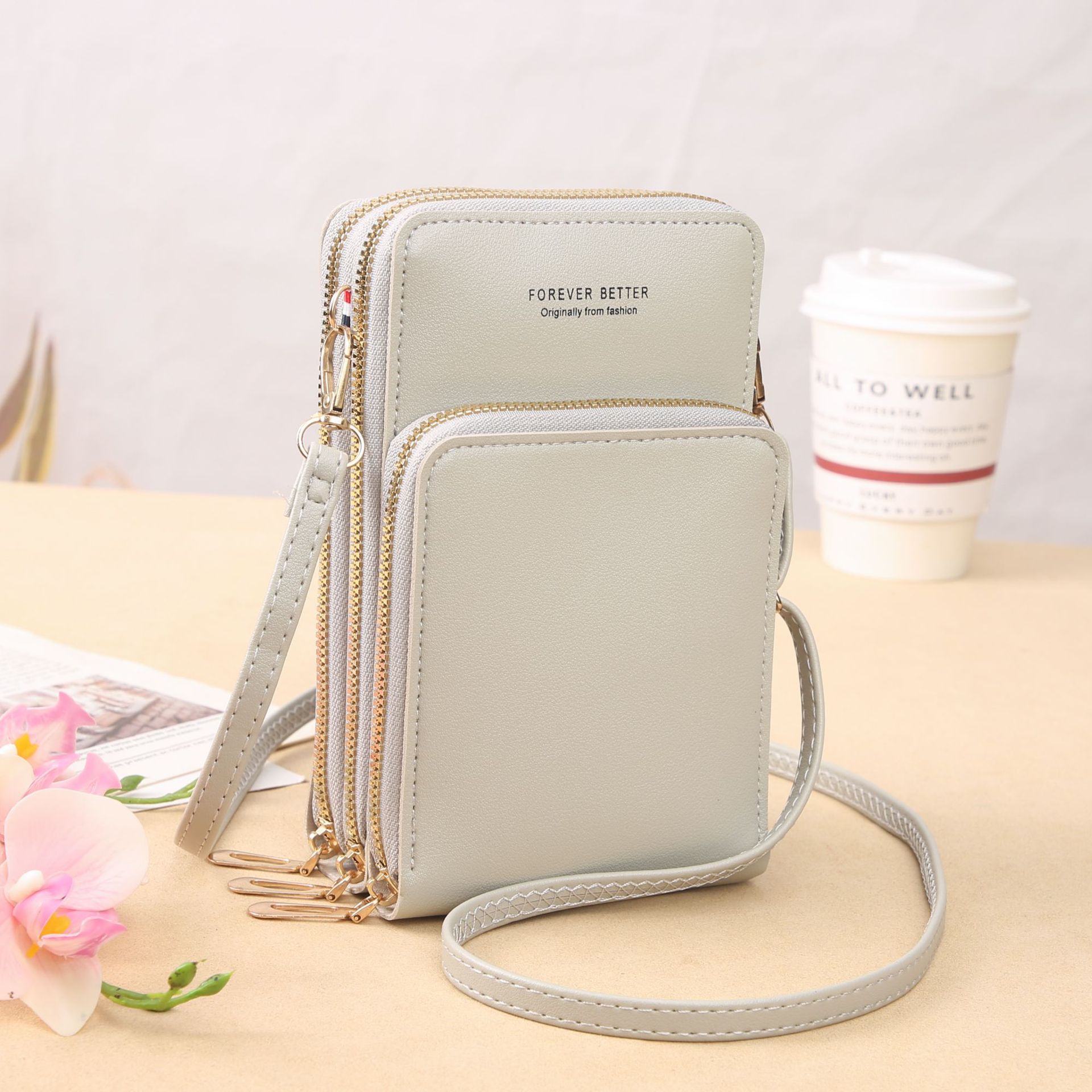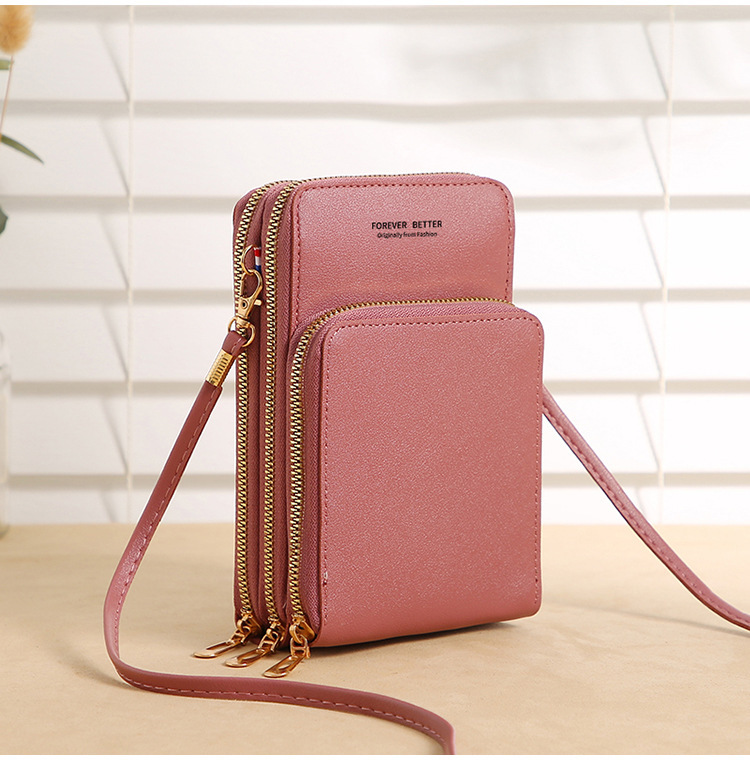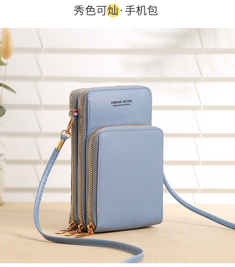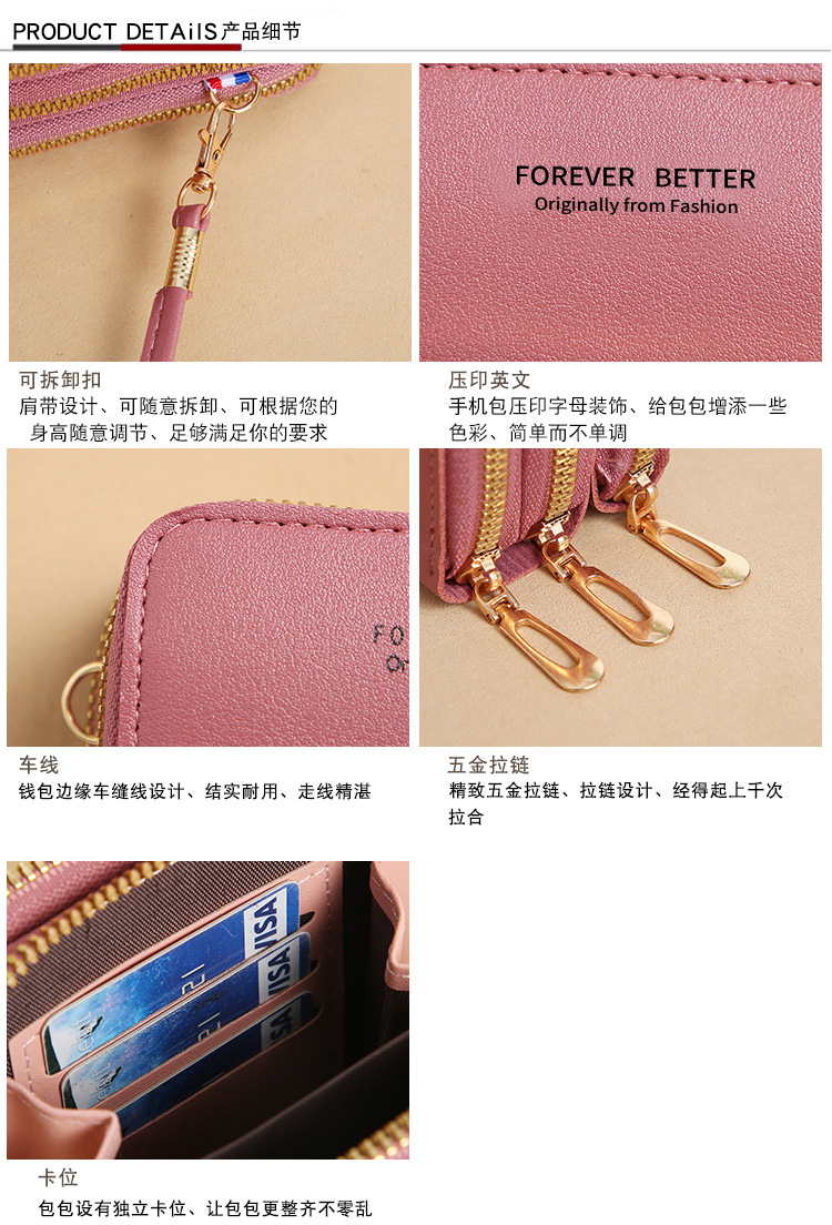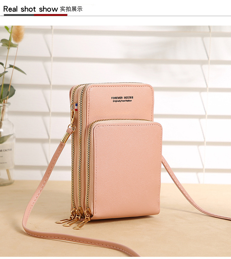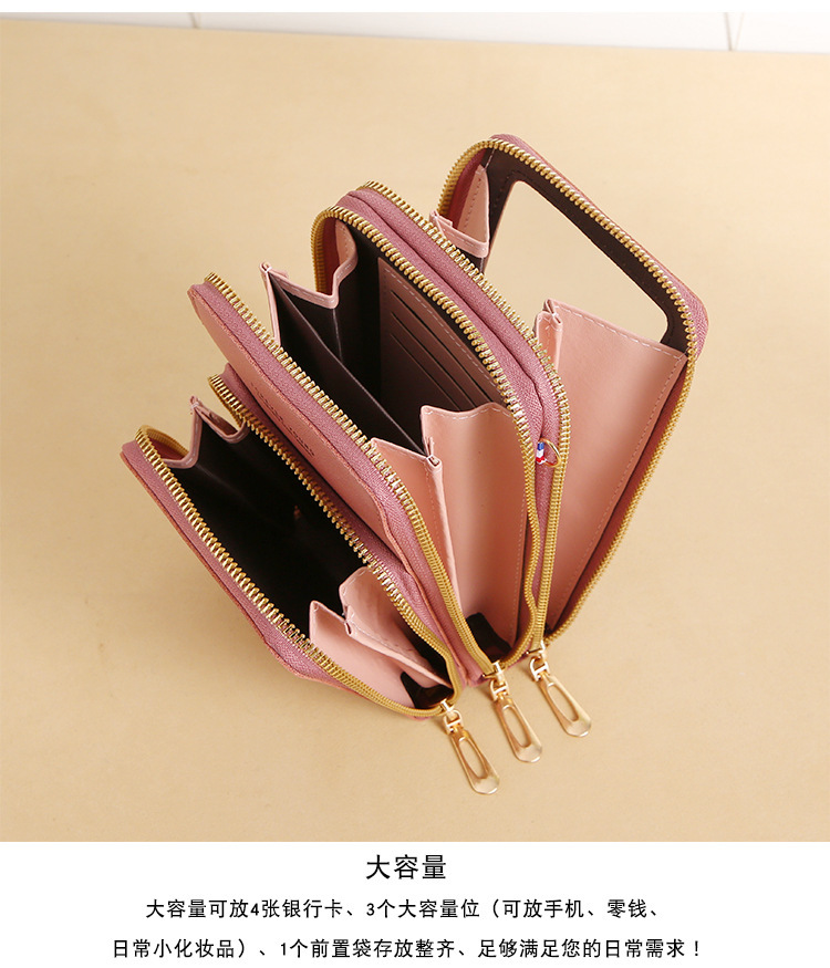 新型携帯バッグ女性韓国版ファッション多機能ショルダーバッグ三層ファスナー純色シンプルミニ財布