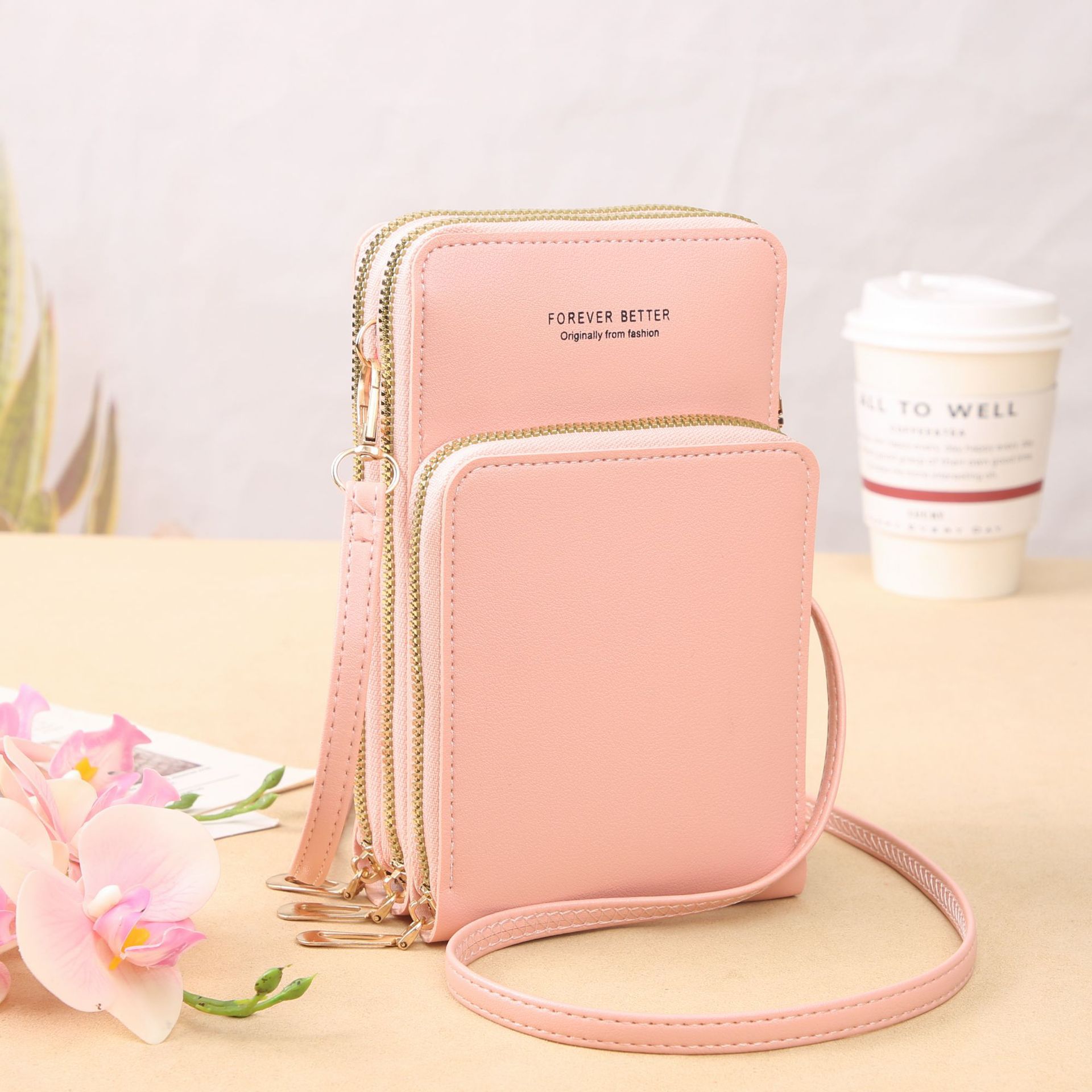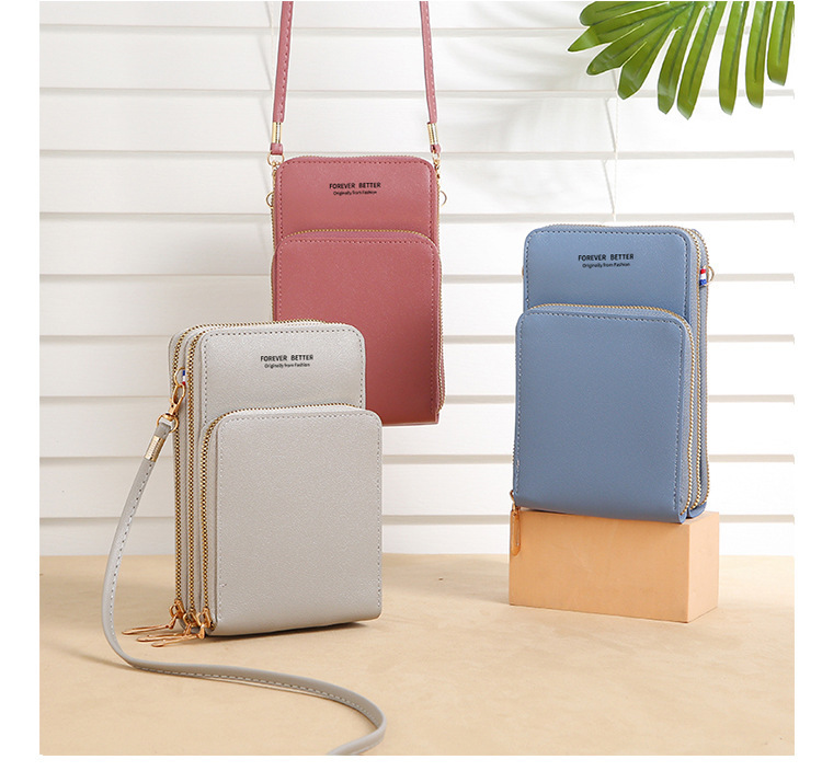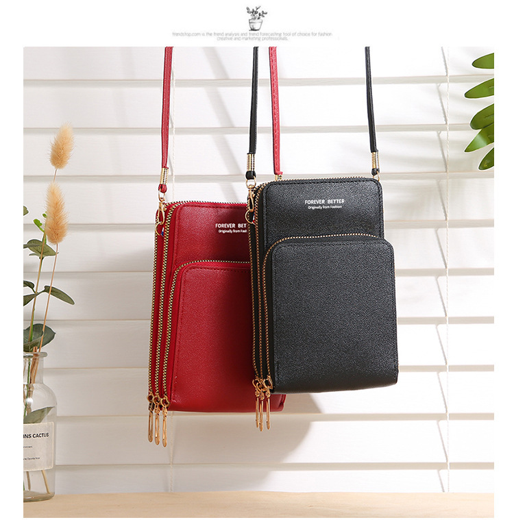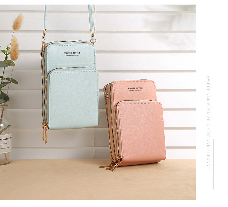 メーカーの卸売りの携帯電話のカバンの女性の肩の小さい斜めのショルダーバッグの二重のファスナーの小さいカバンはタッチパネルの携帯電話のカバンの女性に触れることができます。