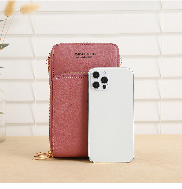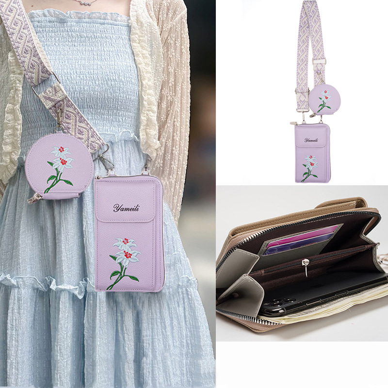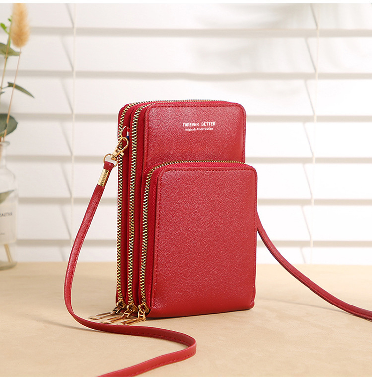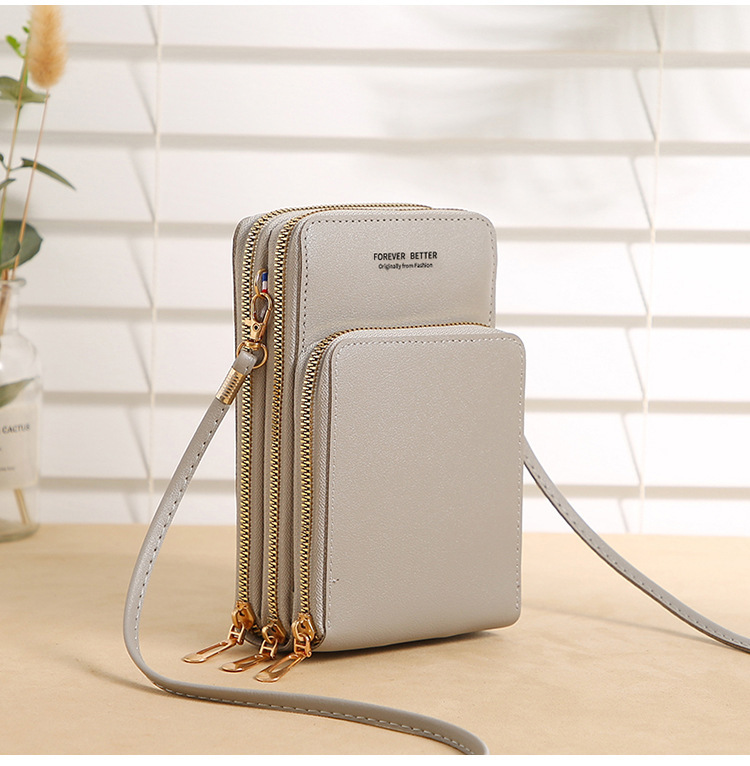 新型タッチパネル携帯電話バッグ女性は大容量の多機能三層百合ファスナー小銭ショルダーバッグを斜めに掛けています。