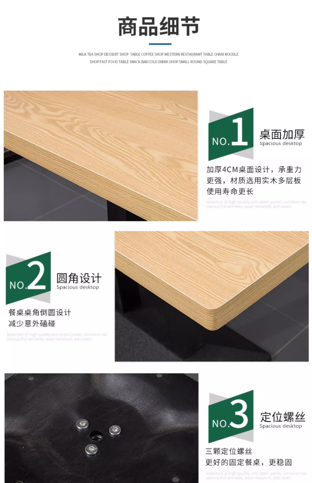 無垢材のダイニングテーブルと椅子の組み合わせ、商業ホテル、シンプルなバースナック、デザート、カフェ、ミルクティーショップ、ラウンドテーブル、長方形テーブル