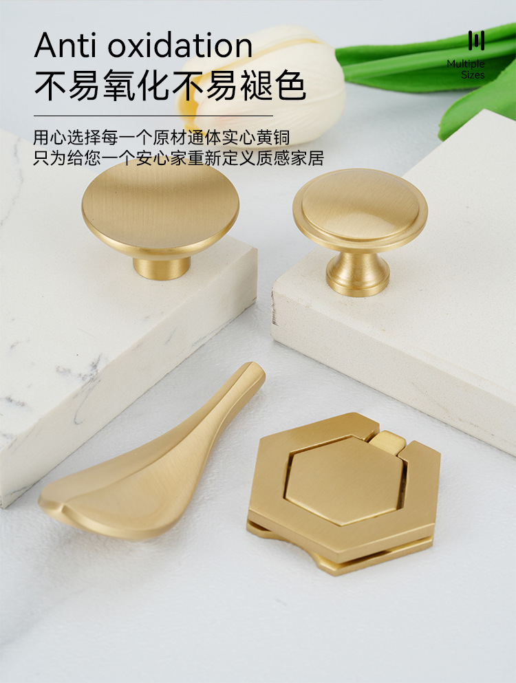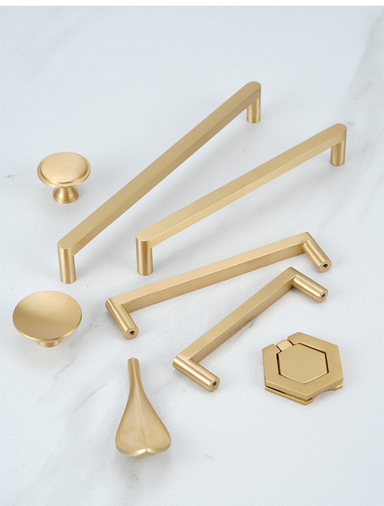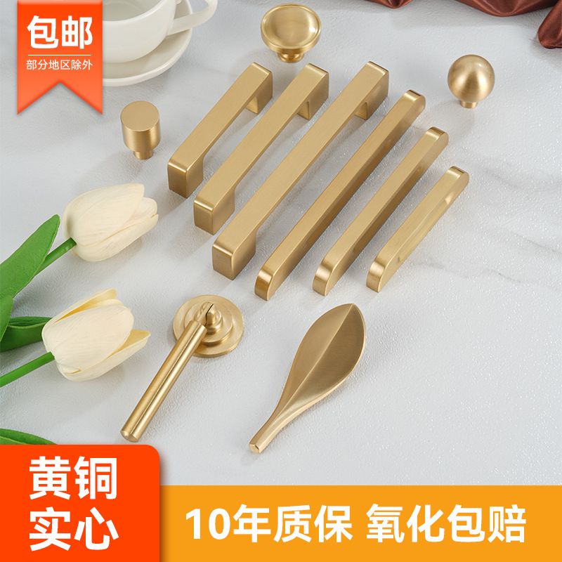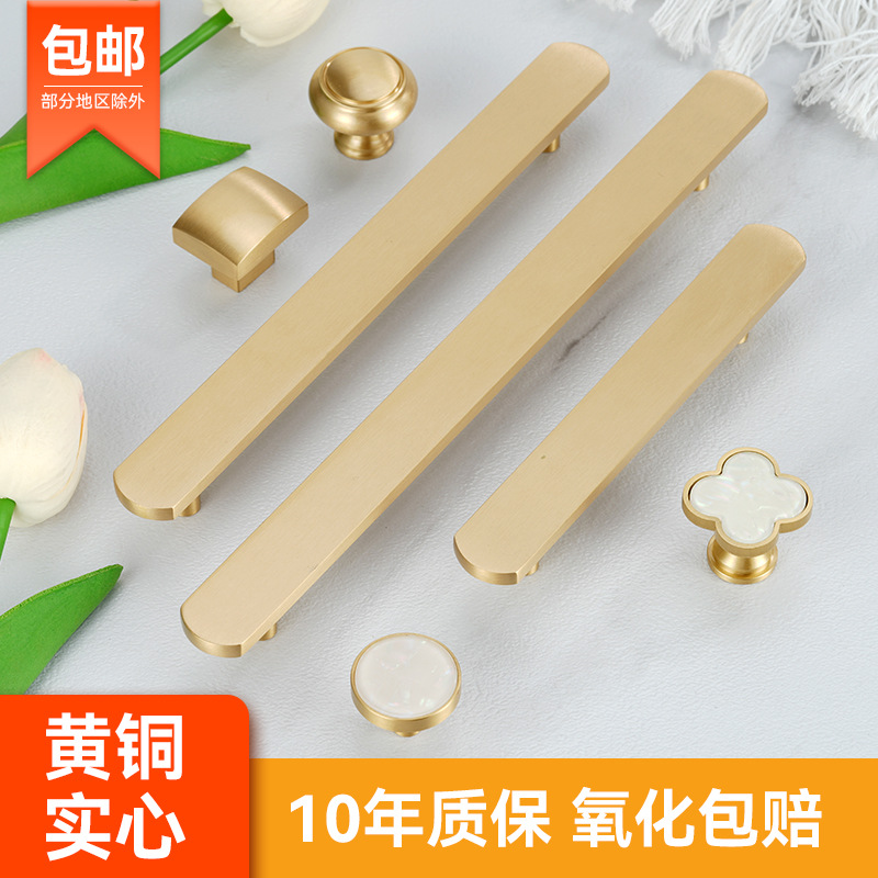 Longlin ハードウェアライト高級ワードローブドア真鍮ハンドルゴールドキャビネット靴キャビネット引き出し純銅ロングハンドルメッシュデザイン