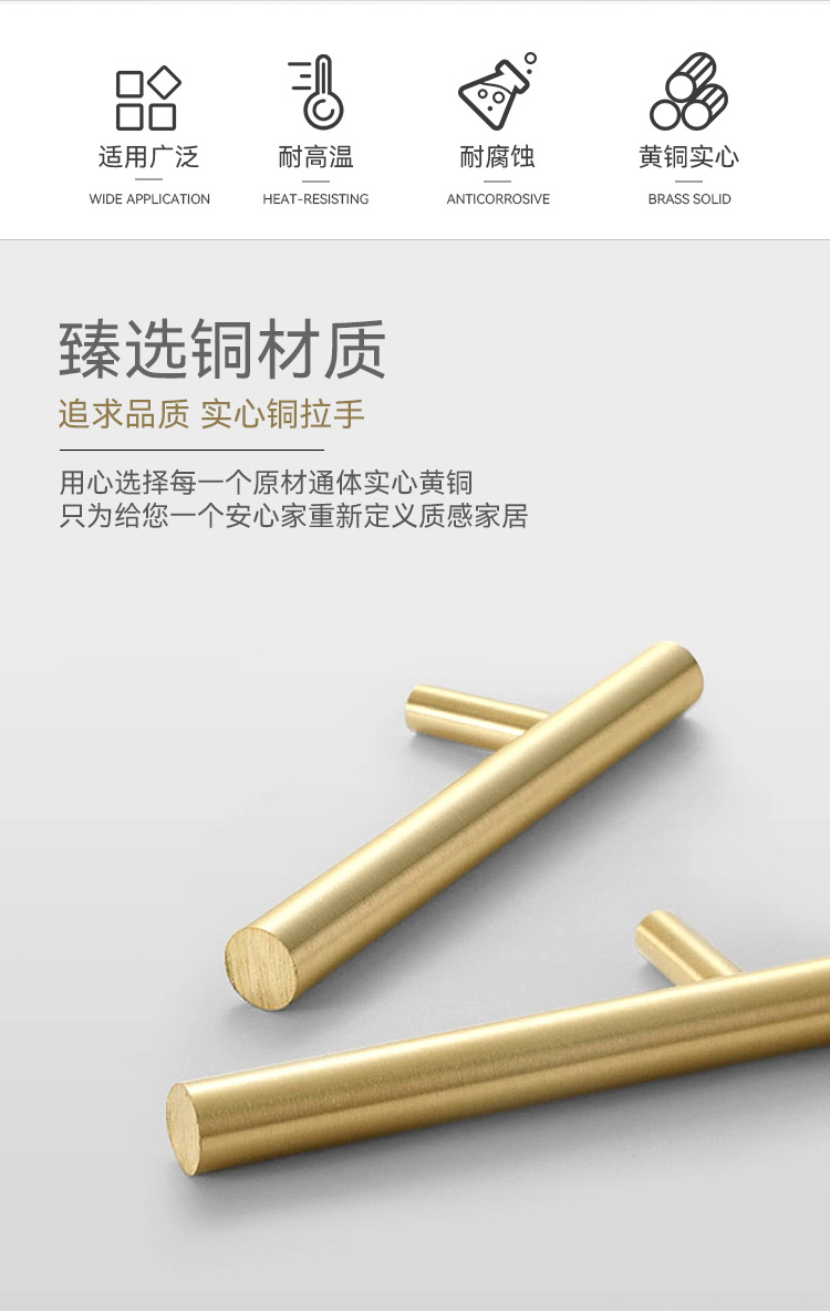 真鍮製ハンドル キャビネットドア ワードローブ キャビネット 引き出しドアハンドル キャビネット ゴールド 全銅色 銅製ハンドル 全銅製ハンドル
