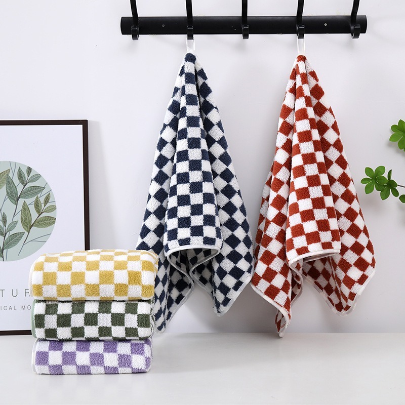 コーラルベルベットのチェッカーボード柄、肌に優しく柔らかいタオル、吸水性があり縁取りされたバスタオル、毛羽立ちにくい大人用家庭用タオル
