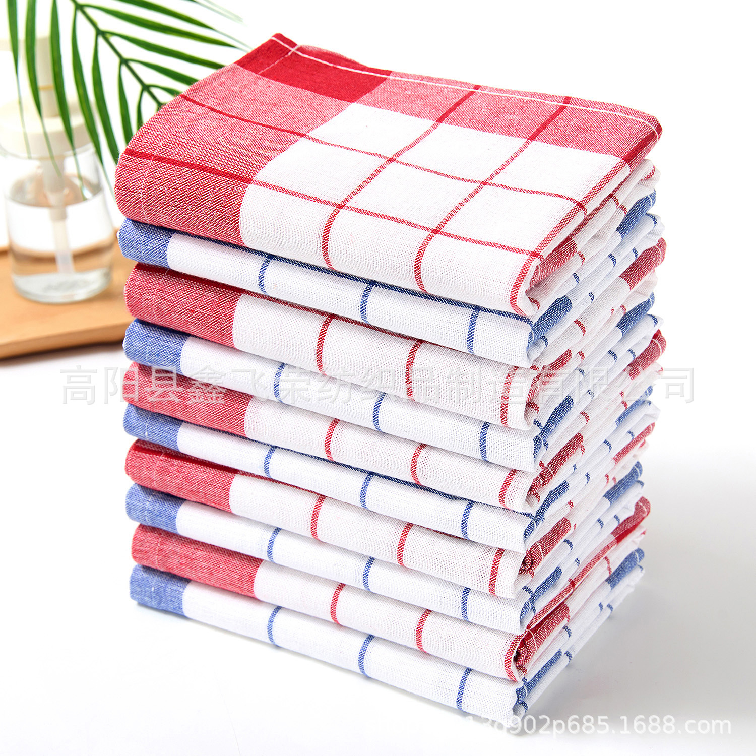 ポリエステル綿色織キッチンタオル皿洗いタオル家庭用吸水雑巾シンプルな格子平布茶巾クロスボーダーソース