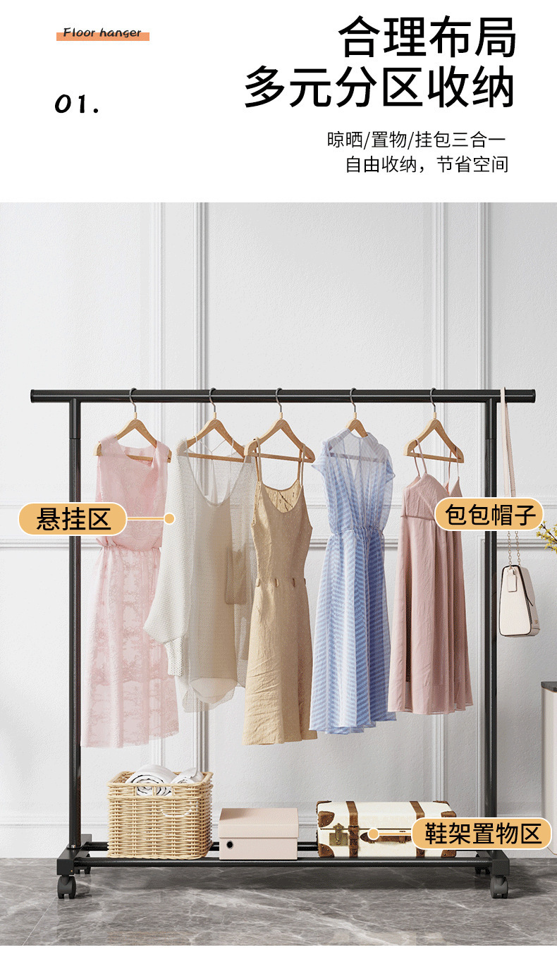 床置きハンガーシンプルダブルバー伸縮リフト移動物干しバー工場衣類ハンガーハンガー補強