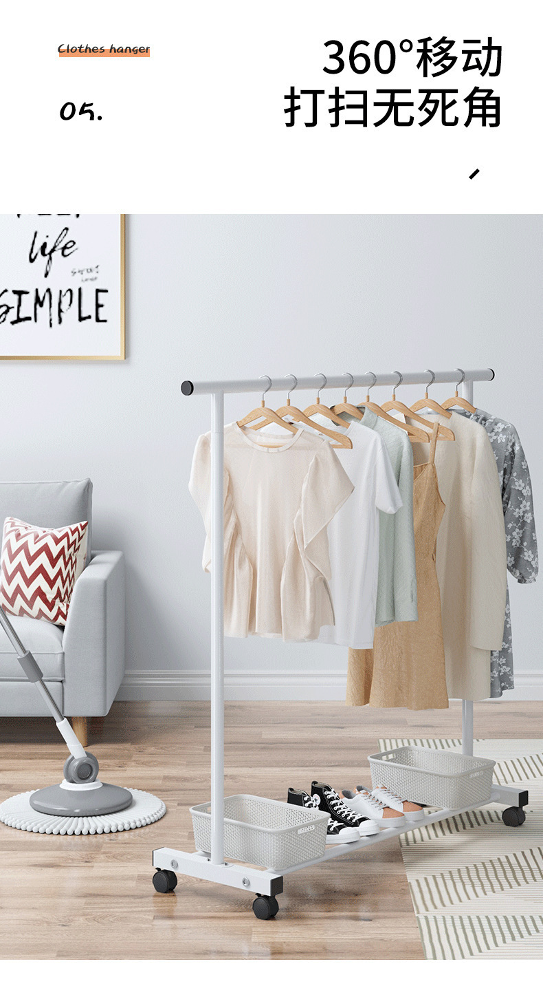 ハンガー床置き簡易ハンガー家庭用ハンガー寝室シングルポール室内ハンガー床置きベランダ干し家庭用