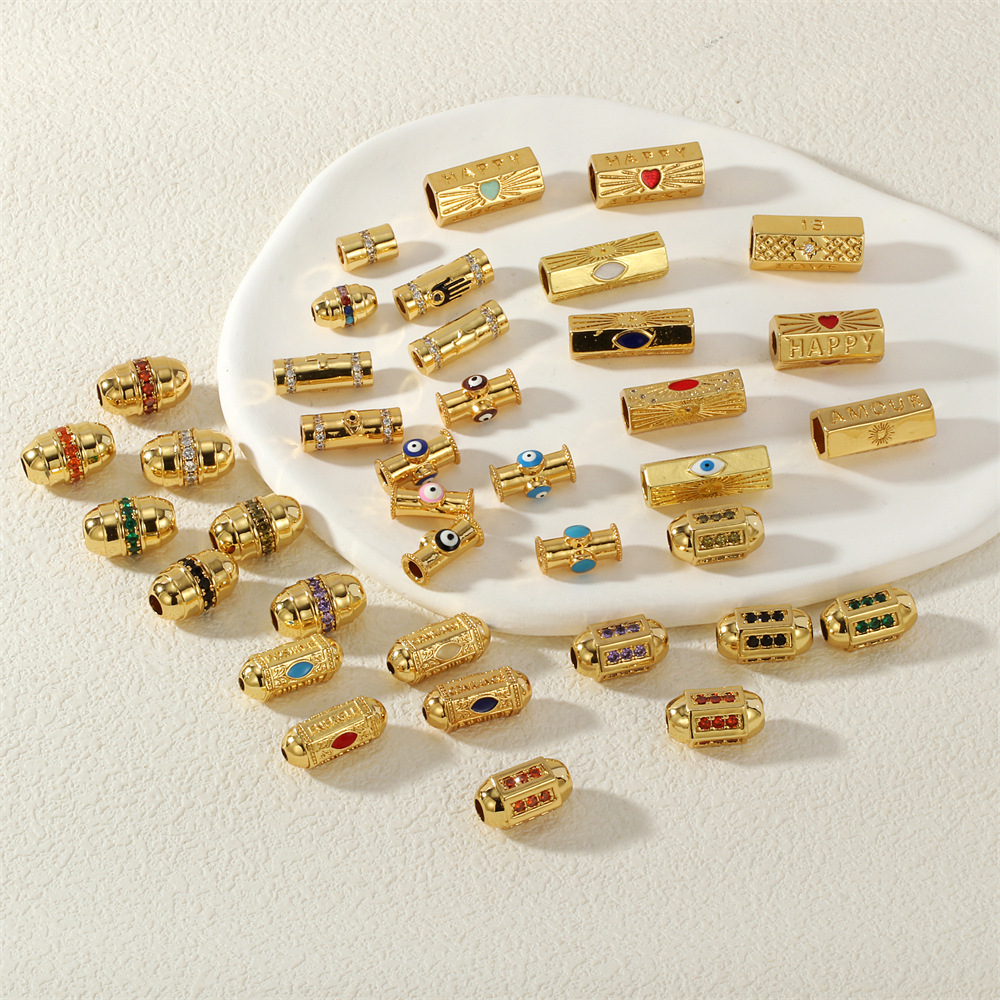 欧米の人気銅メッキ18k愛の目の滴油散珠部品diyアクセサリーはジルコン穿孔珠ペンダントをはめ込んでいます。