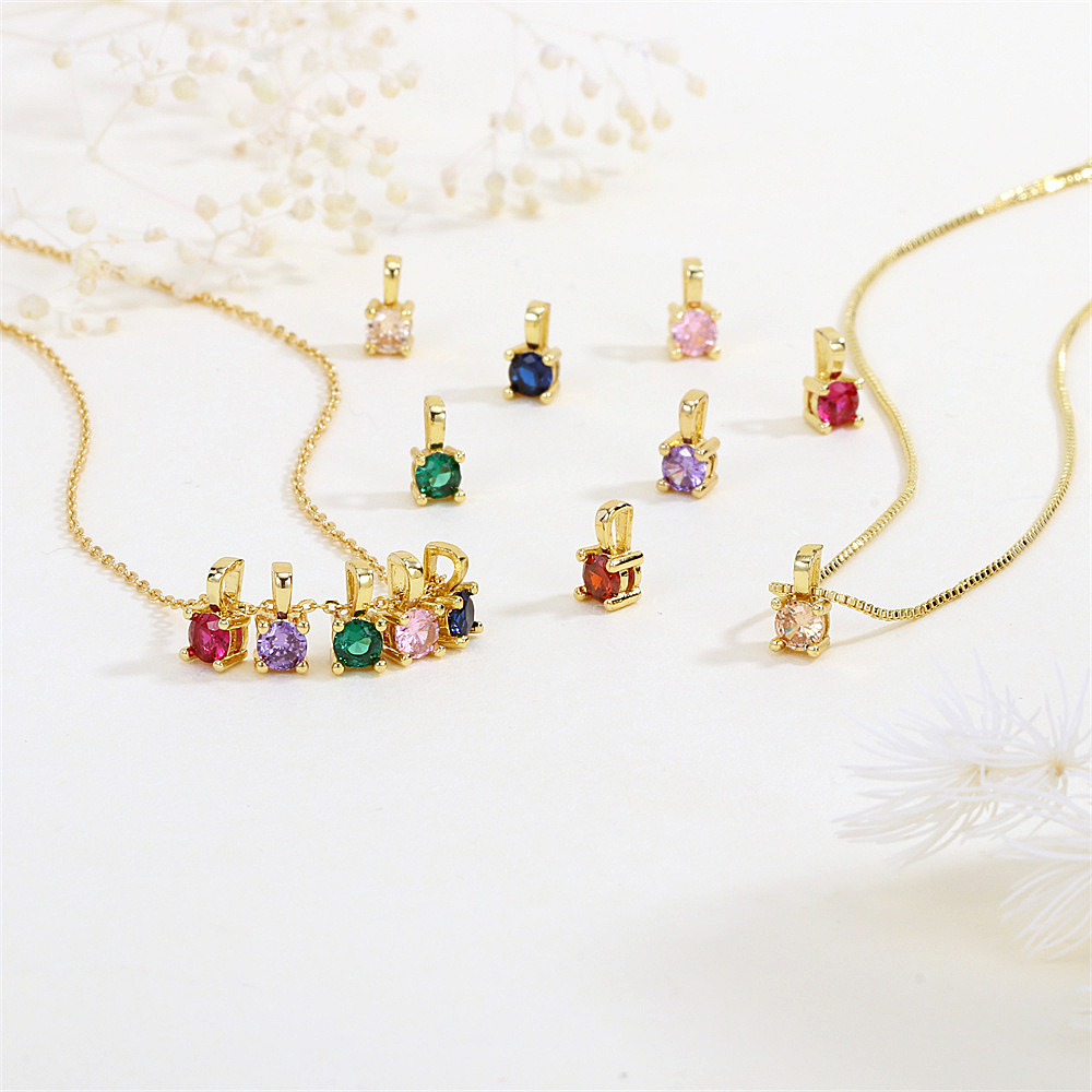 DIYジュエリーアクセサリー卸売 ヴィンテージ18K銅メッキ18K色保持ラウンド爪留めジルコンペンダントネックレス小飾り