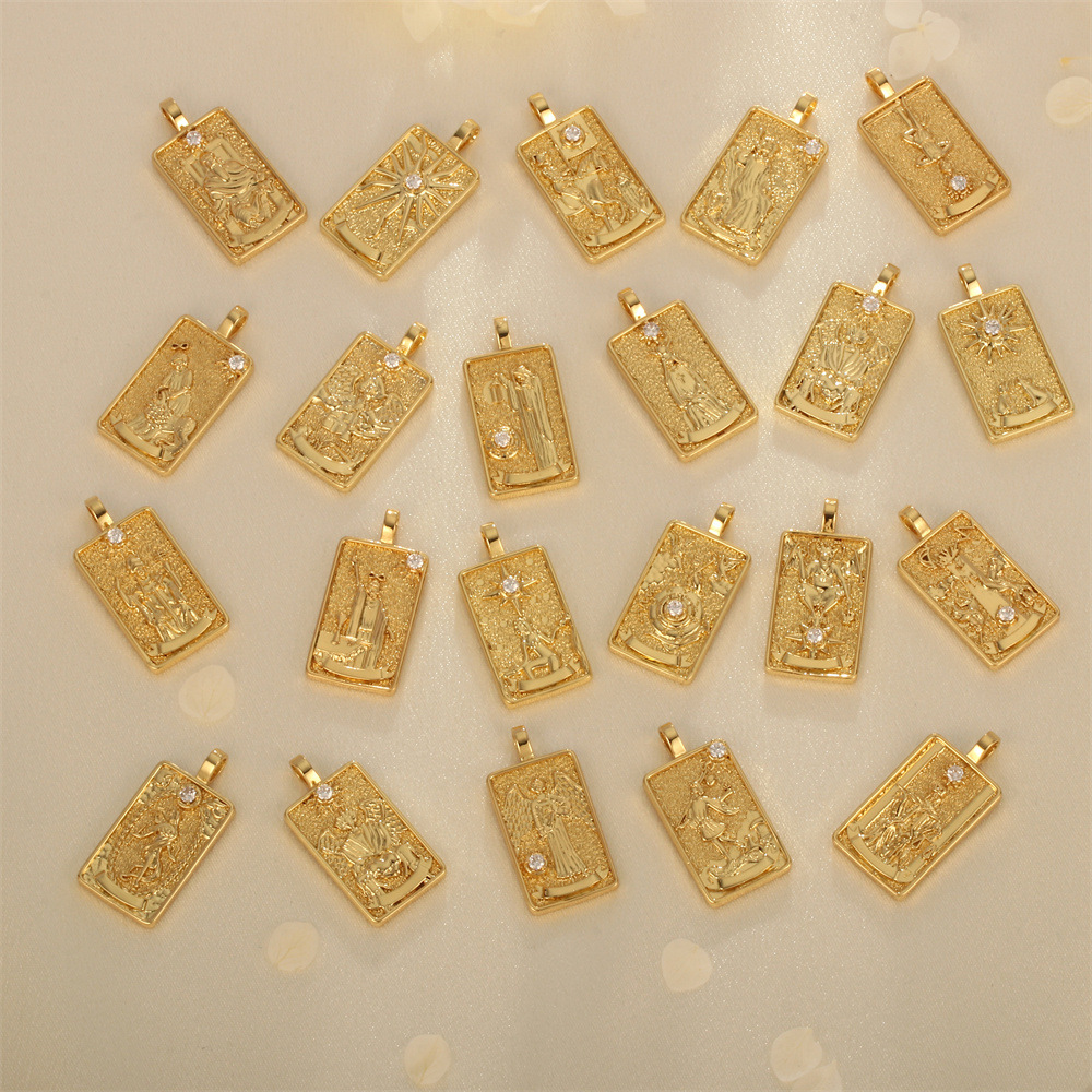 クロスボーダー熱売銅メッキ保色メッキ白ジルコニウム角札タロット信仰ペンダントヒップホップ部品工場卸売り