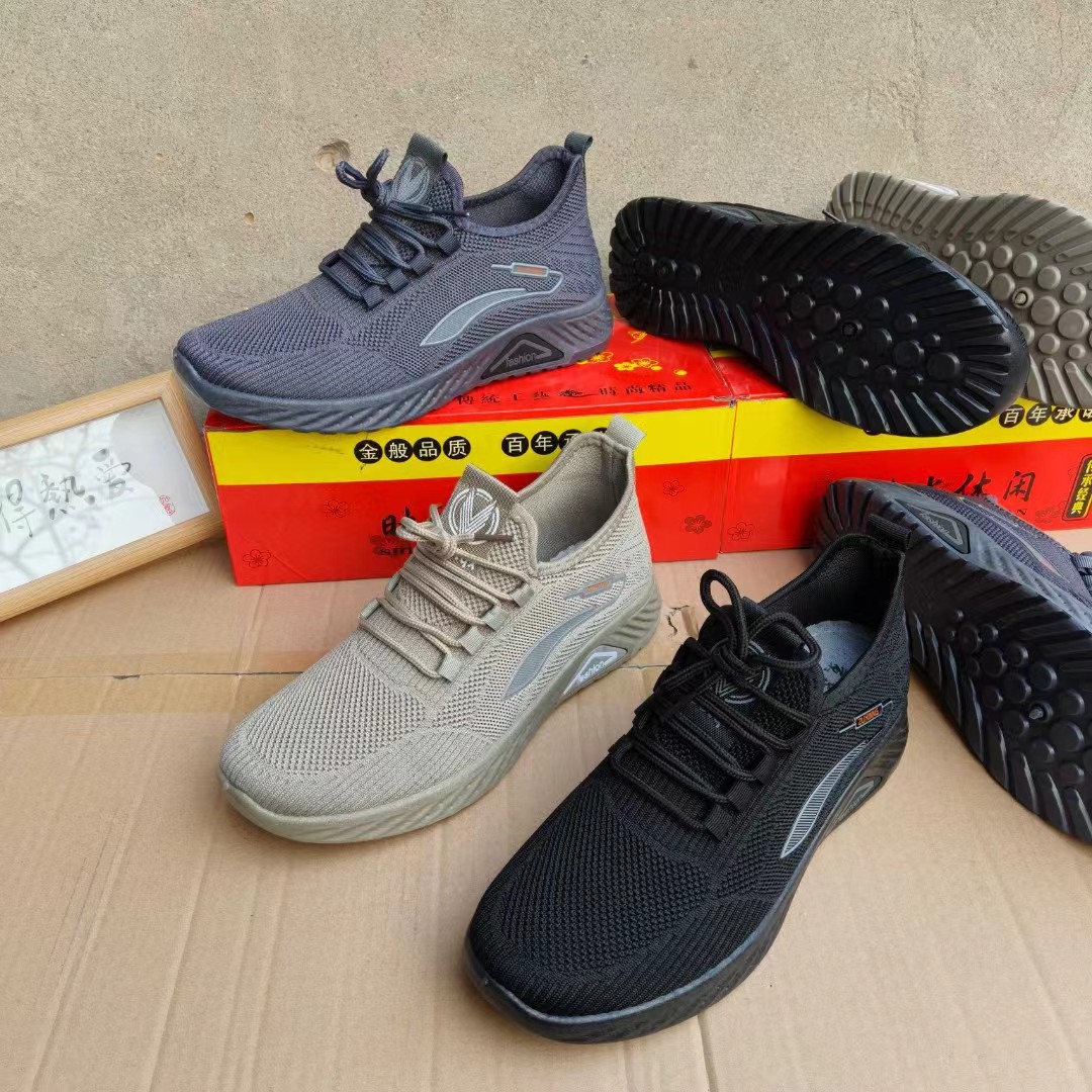 春と秋の新型男性のカジュアルな靴の一枚の飛織男性の靴の屋外の通気性の中高年のお父さんの靴