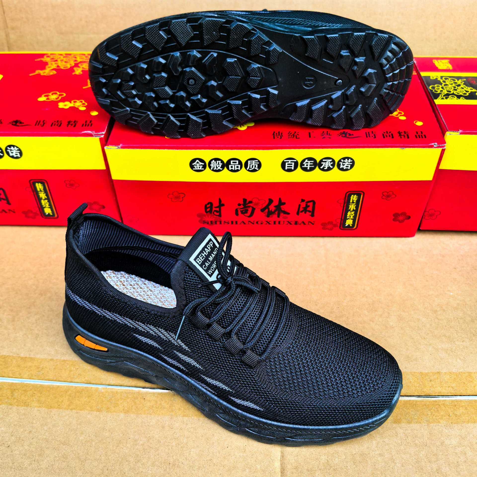 老北京布鞋男秋季新款飞织加海绵男士休闲单鞋透气舒适中年爸爸鞋