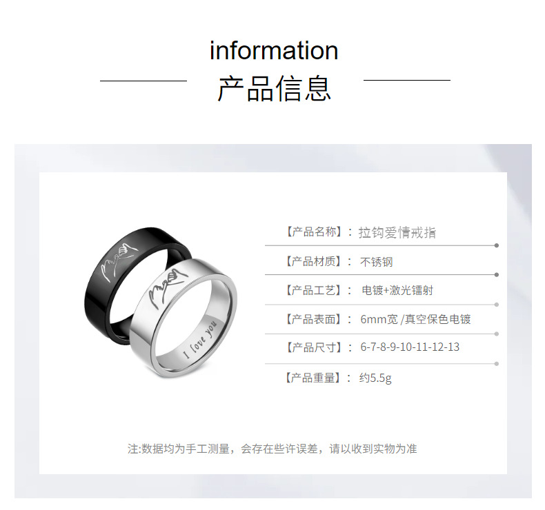 ステンレスカップルの指輪が国境を越えて熱売フックを販売して百年も変わらないチタン鋼の指輪は色が落ちない