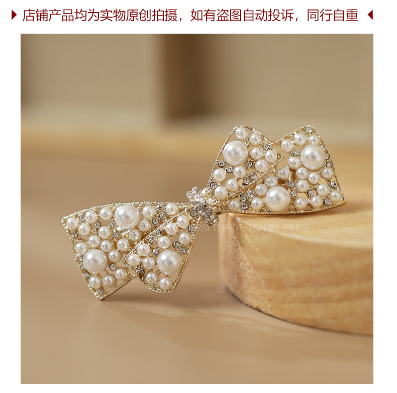 ミディアム新パールリボン春クリップヘアピンインターネット有名人 2022 女性韓国ラインストーンヘアピンクリップ帽子
