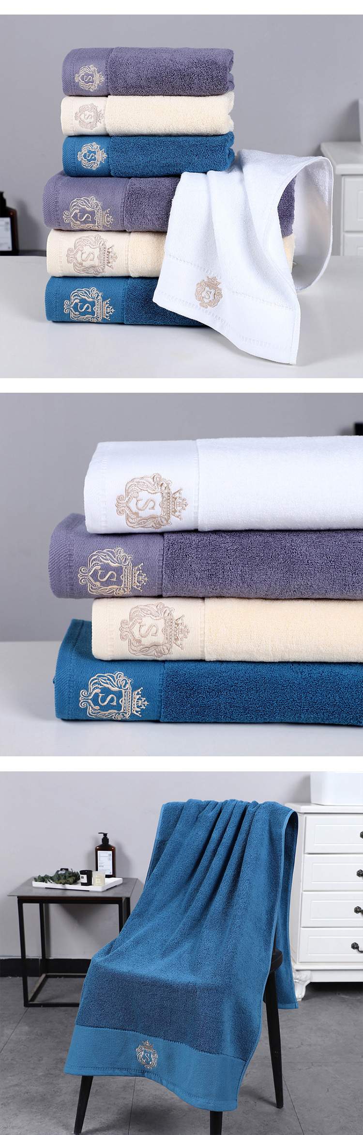 品質を厚くする綿バスタオル男女入浴タオル刺繍ロゴホテル美容院バスタオル