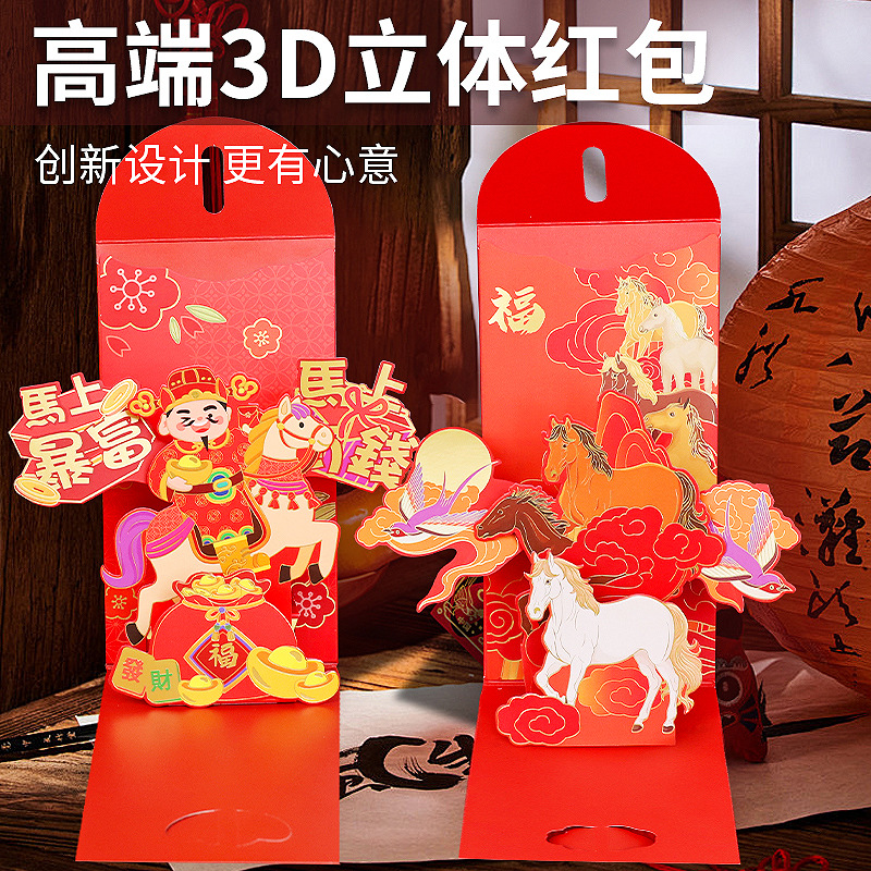 创意新年马年红包袋高档立体3D个性利是封2026新年春节红包批发