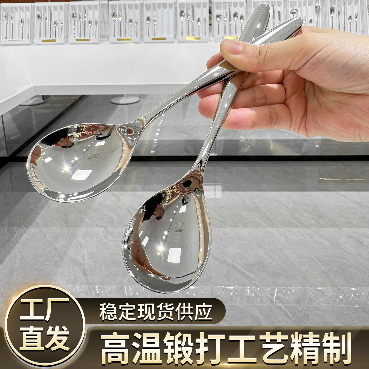 高級鍛造304ステンレススプーンホテルレストランメーカー直販長柄食事スプーン高颜値スプーン