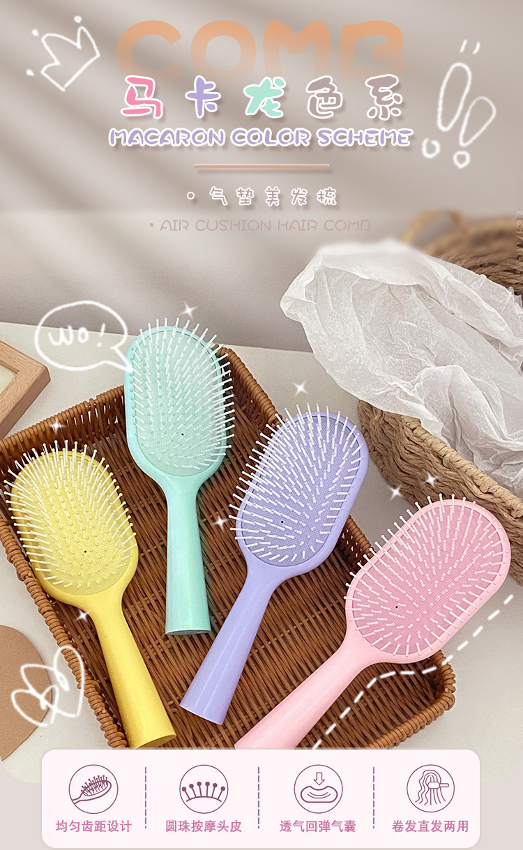 マカロンエアバッグコーム女子学生ポータブル美容ポータブル小型エアクッションマッサージコーム家庭用ヘアコーム小さなコーム