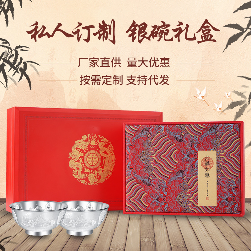 銘匠メーカー卸売り銀碗足銀碗箸スプーン三点セットの木製ギフトボックスの高級食器セットの包装箱