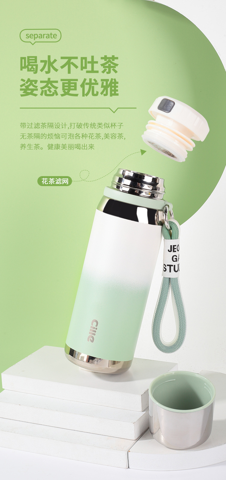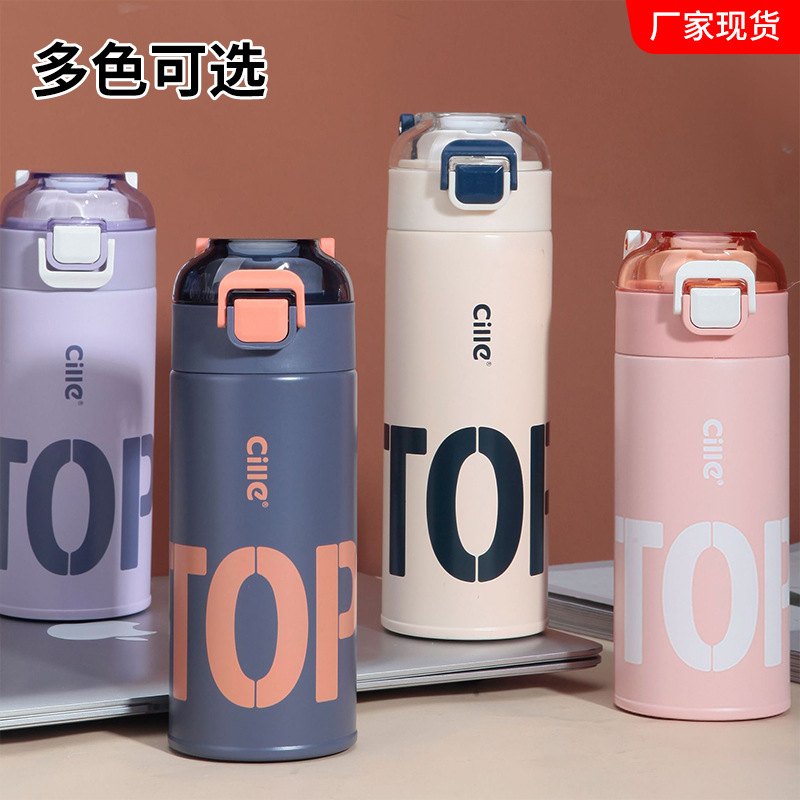 希楽保温カップ大容量携帯新型高颜値ステンレスカップ提縄男女学生弾みコップ