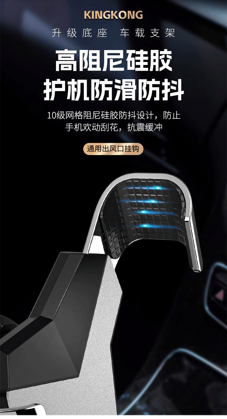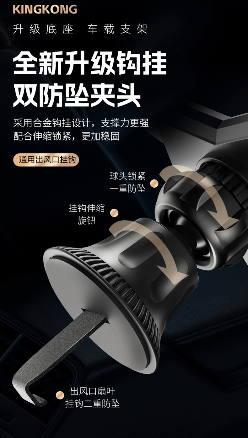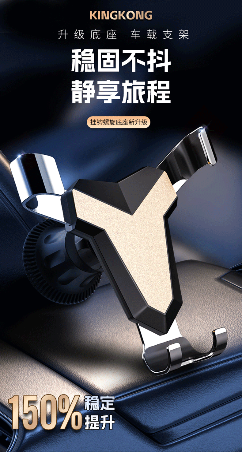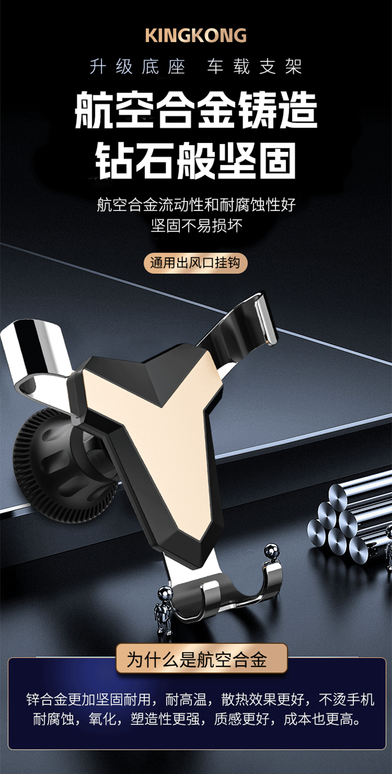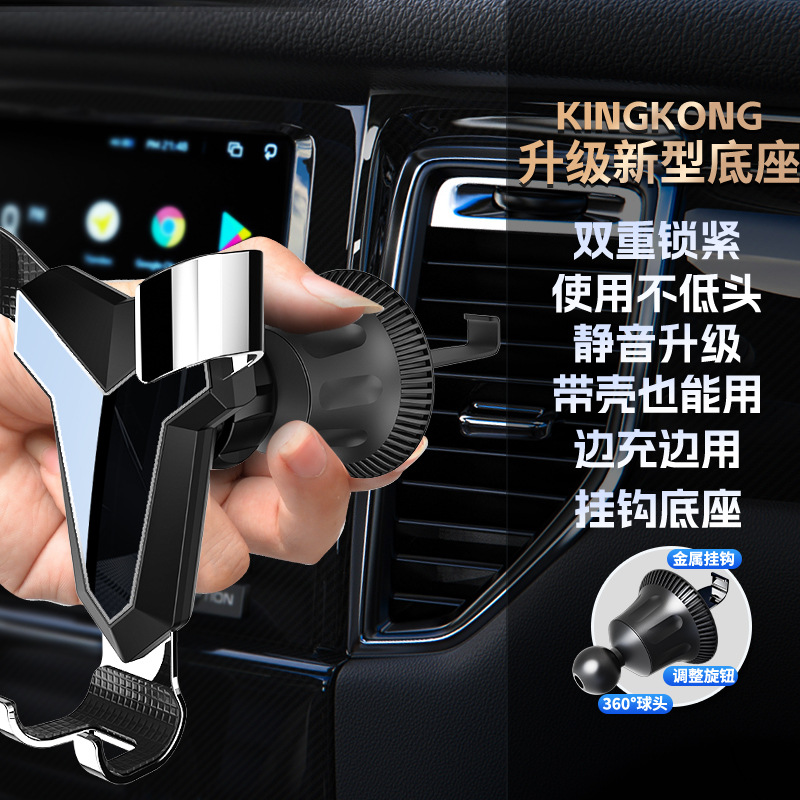 新款铝合金汽车通用重力出风口车载手机支架卡扣式支架挂钩底座