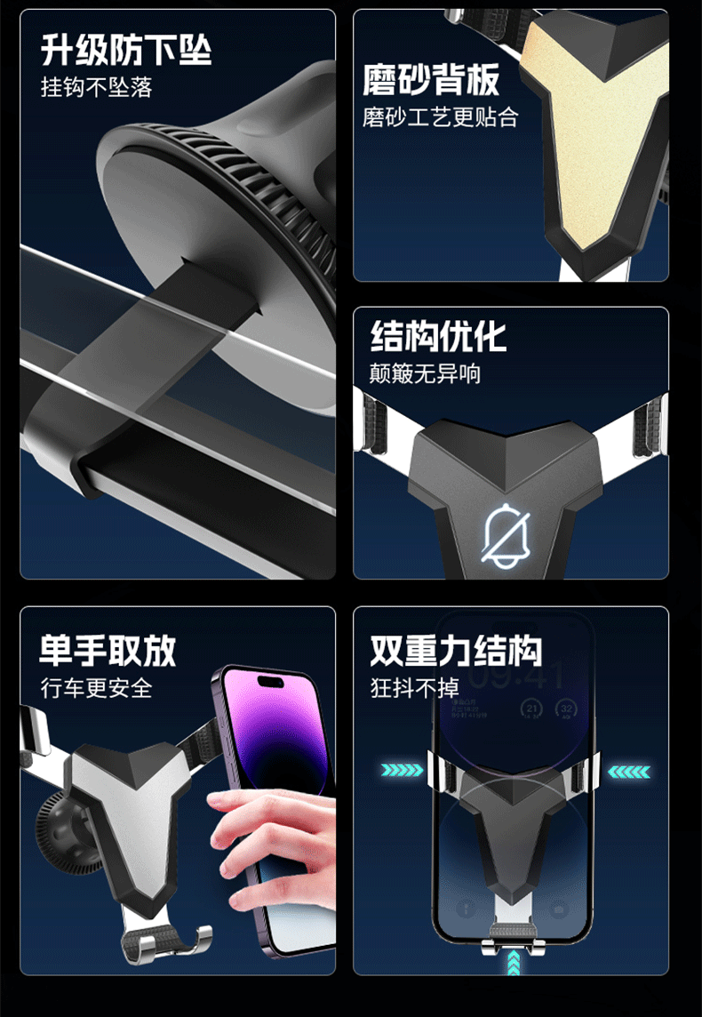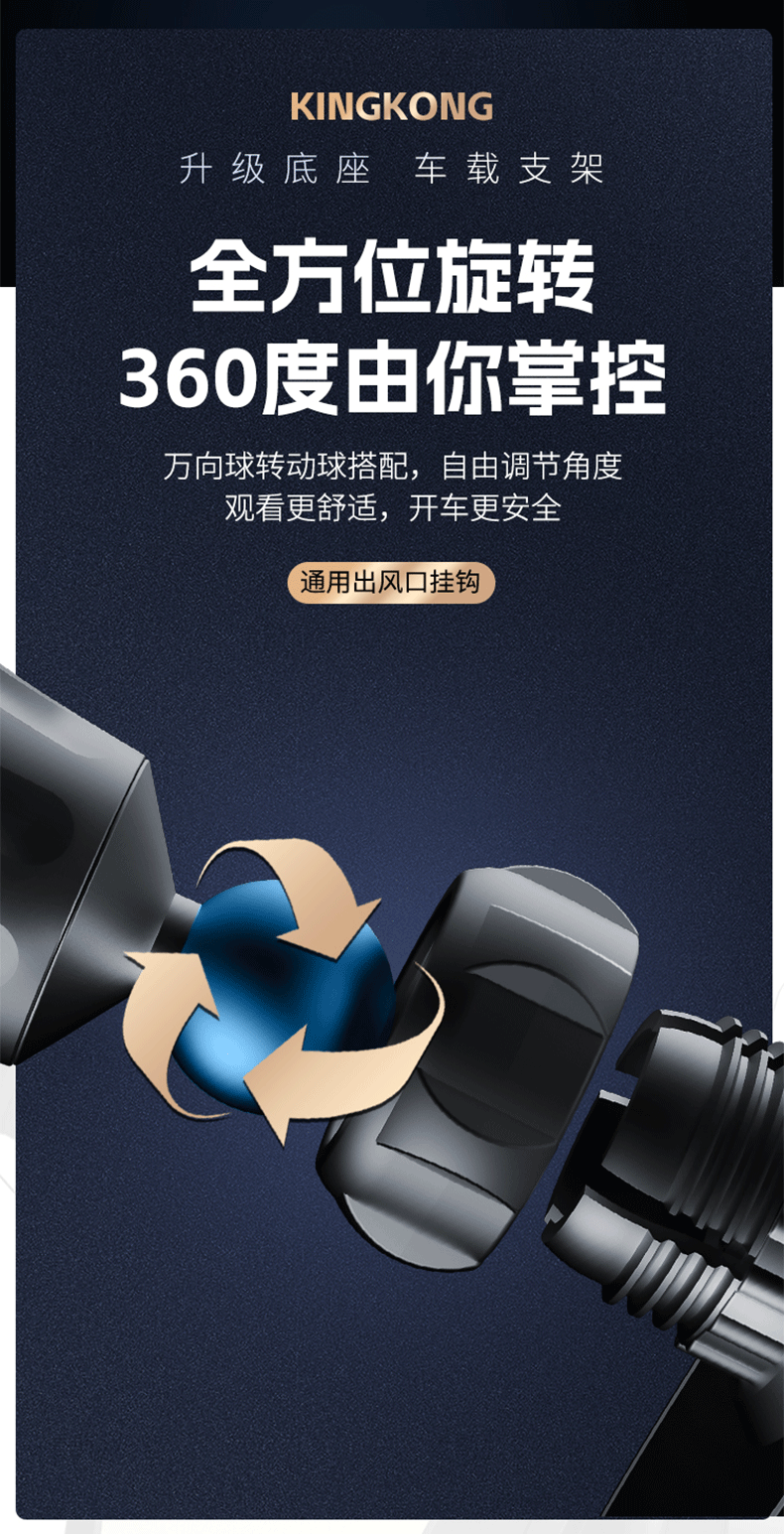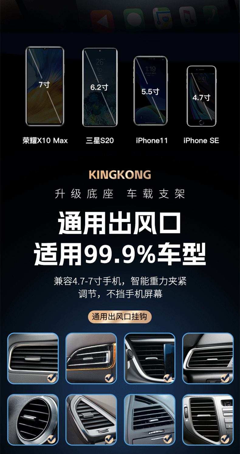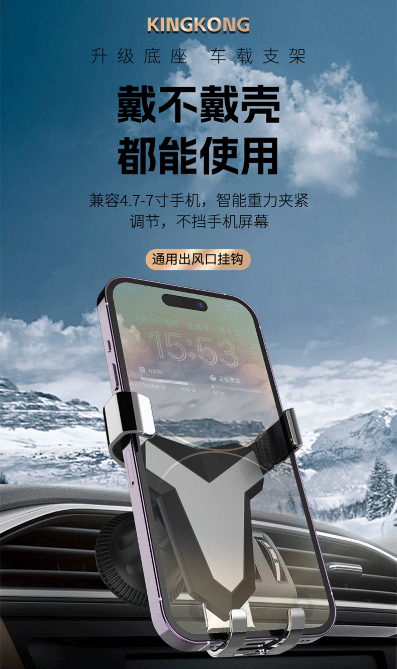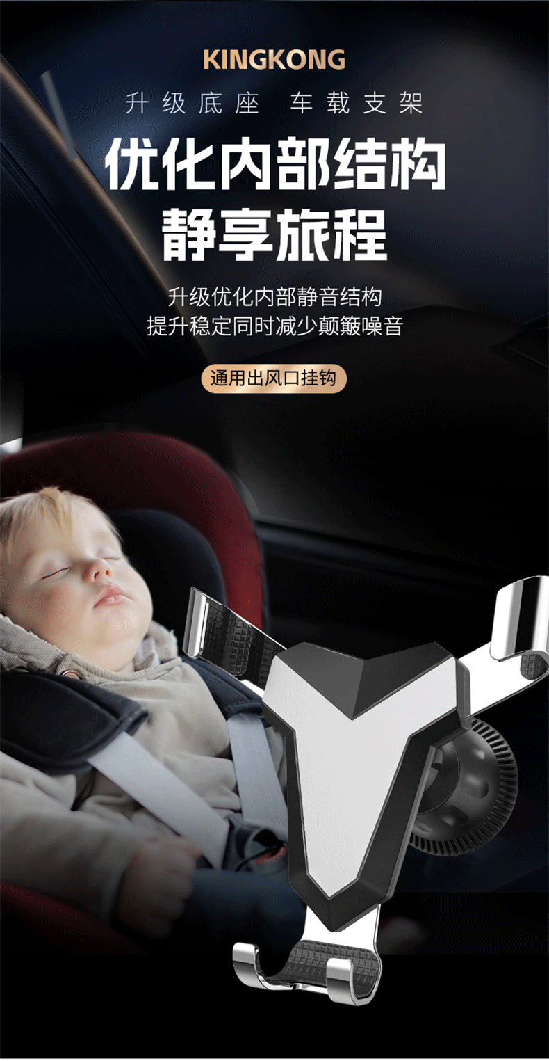 新款铝合金汽车通用重力出风口车载手机支架卡扣式支架挂钩底座