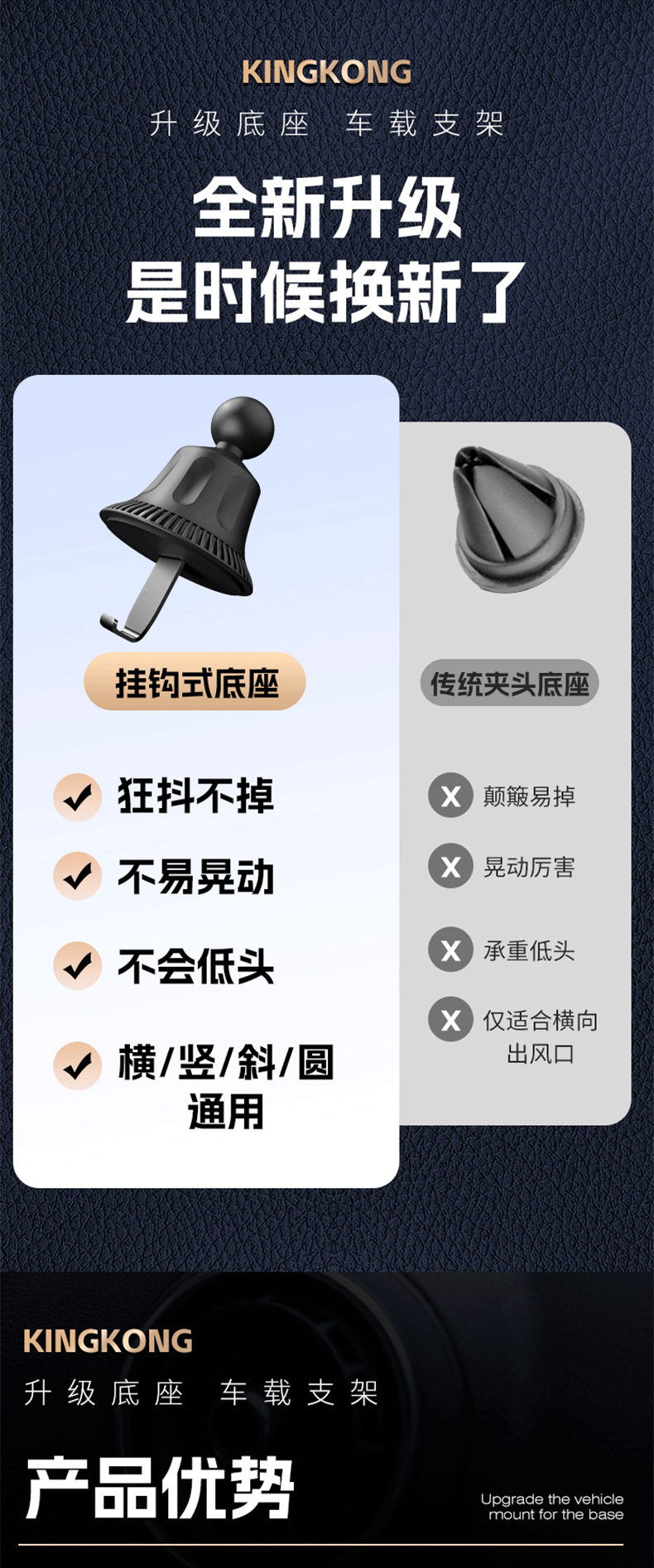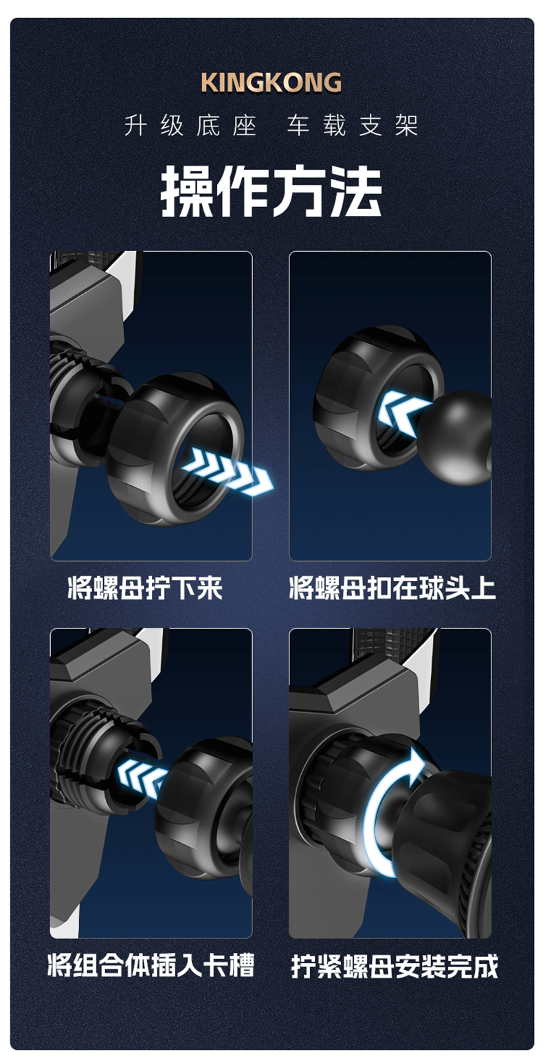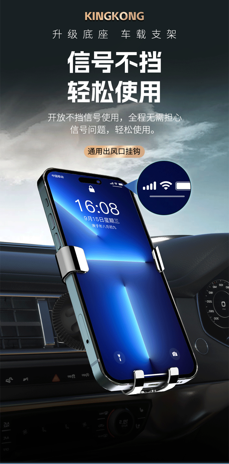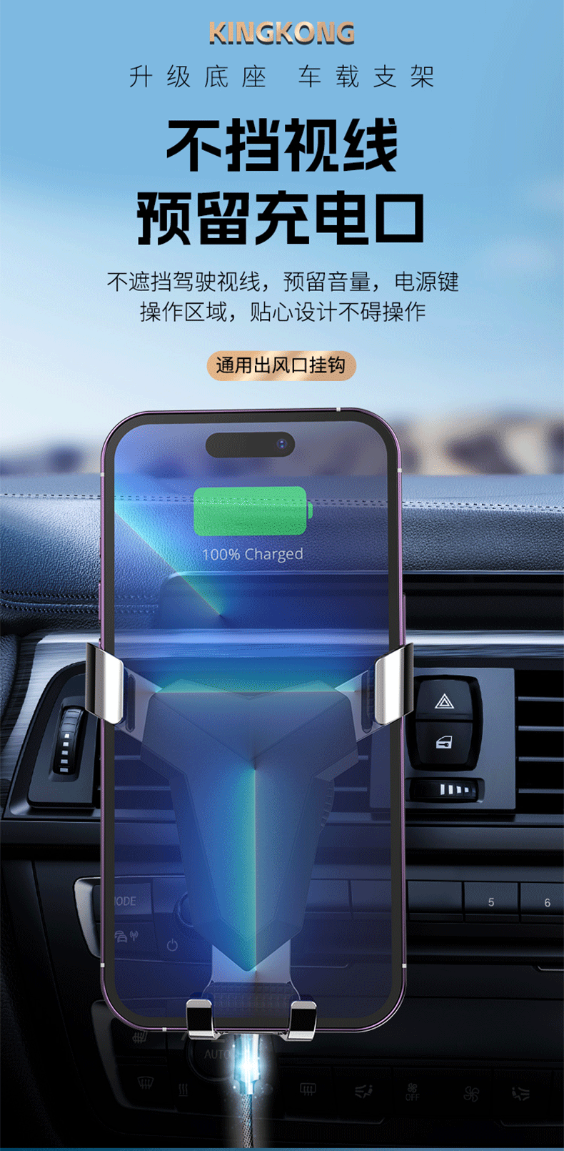新款铝合金汽车通用重力出风口车载手机支架卡扣式支架挂钩底座