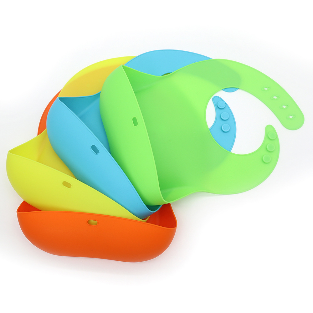 婴儿辅食硅胶围兜 防水宝宝吃饭硅胶围兜 宝宝口水硅胶围兜纽扣款