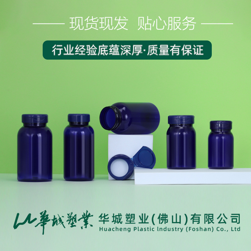 厂家现货高档100ML明紫蓝色翻盖保健品瓶胶囊药片钙片空药瓶pet瓶