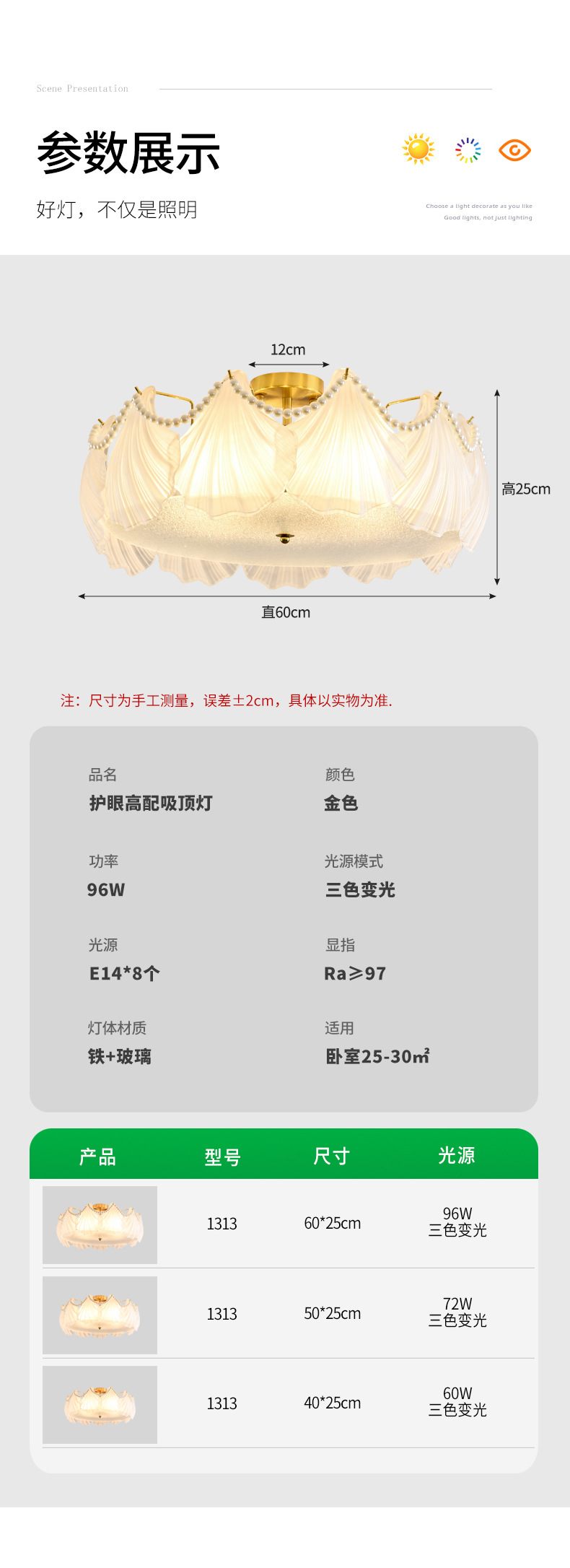 卧室吸顶灯2025年新款轻奢高级餐厅吸顶灯中古风护眼中山灯具413L