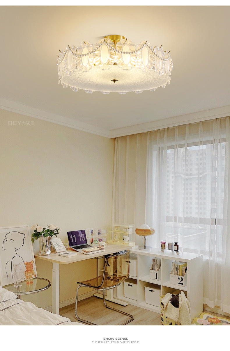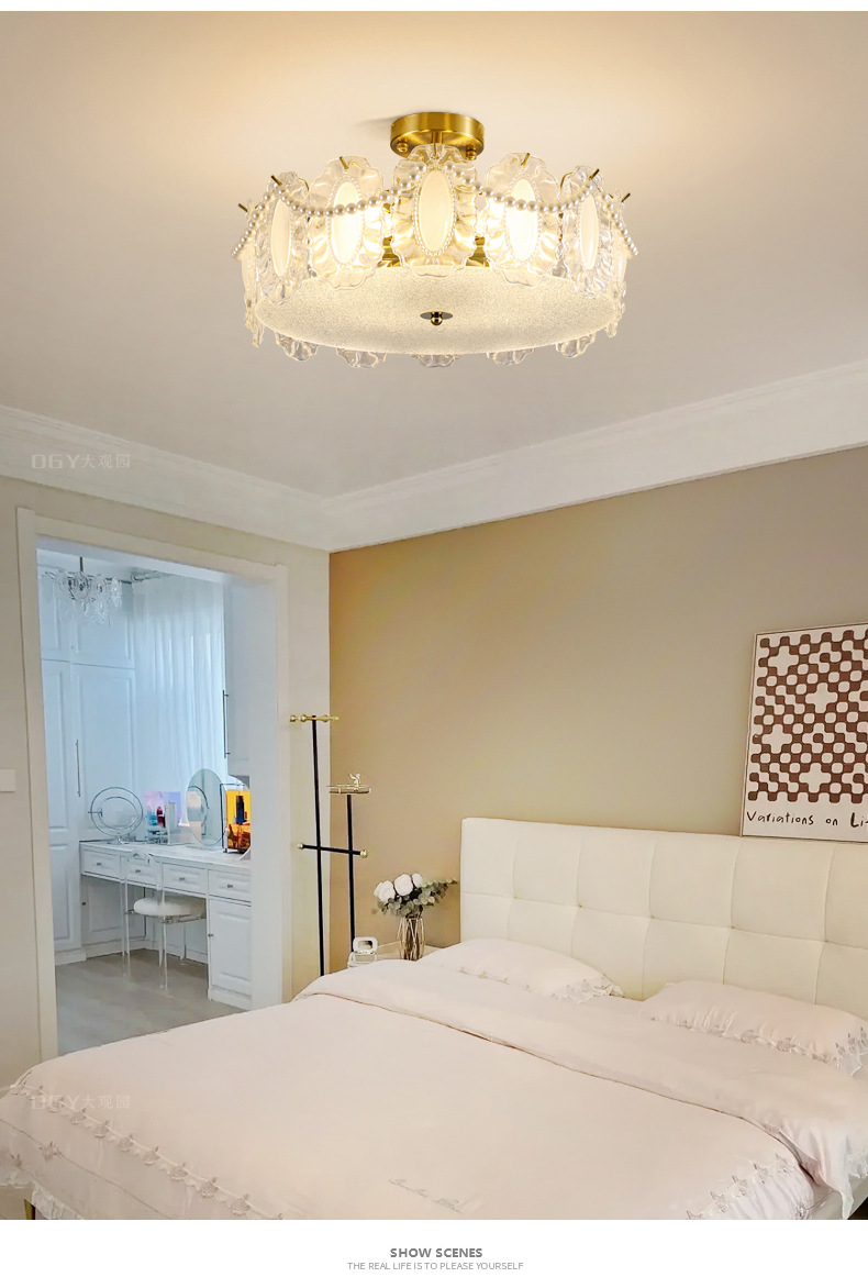 法式中古风金箔荷叶卧室主灯南洋风轻奢高级感简约衣帽间灯具686L