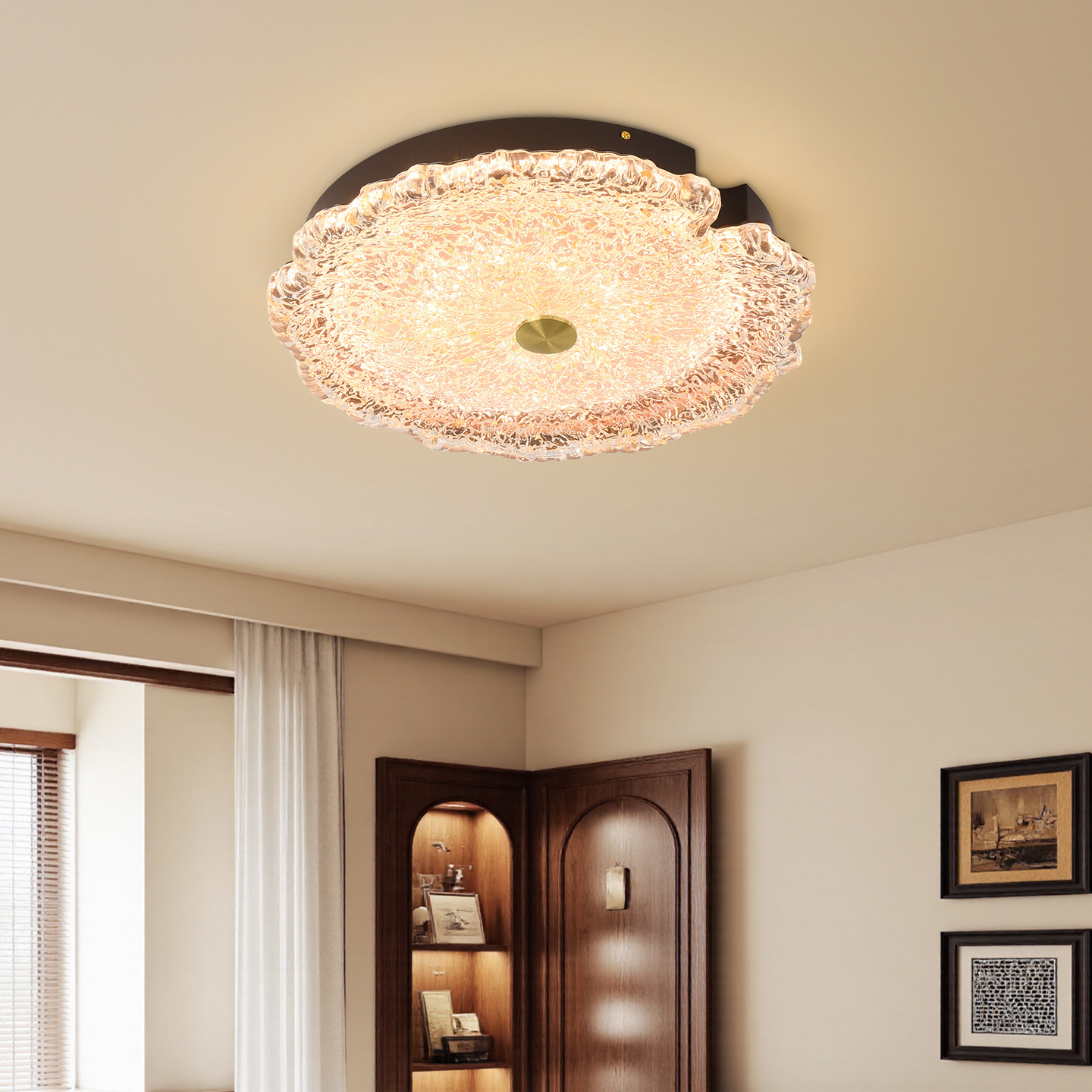 軽くて豪華なフランス式の暖かい寝室の明かりの天井の明かりの簡単な水晶の部屋の後で現代のガラスの2025年の新型の照明器具