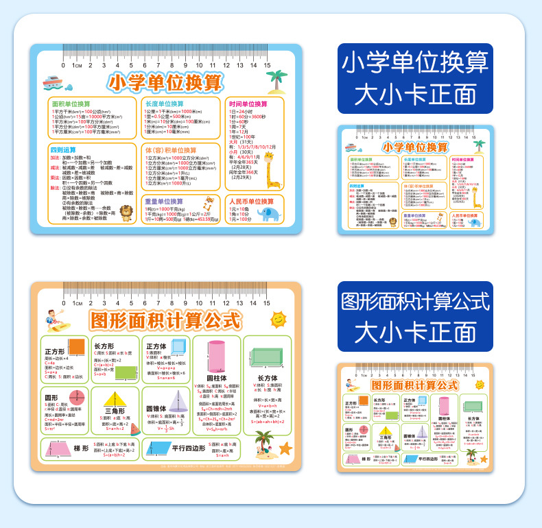 小学生九九乗除口決表単位換算図形面積計算式一二年生数学式