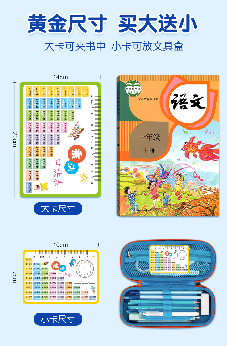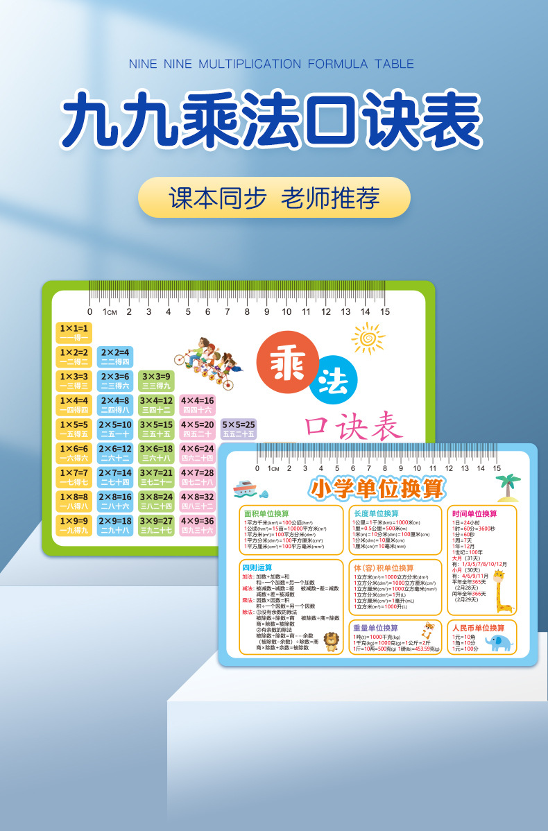 小学生乘法口诀表背诵神器九九大99乘除法二年级数学公式大全卡片