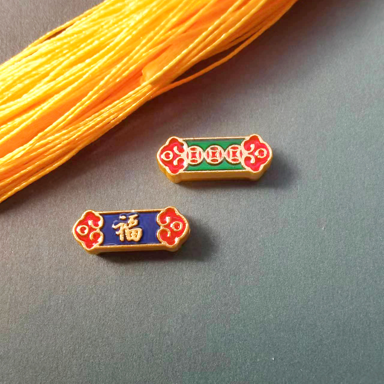 古法唖金双銭福字如意部品ペンダント通孔diyアクセサリーアクセサリー環境保護亜鉛合