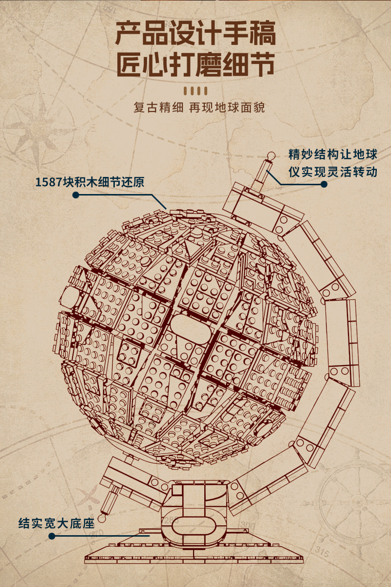 クロスボーダー 6089 クリエイティブ MOC 地球儀モデル少年小粒子組み立てビルディングブロック 95335 おもちゃ 1332