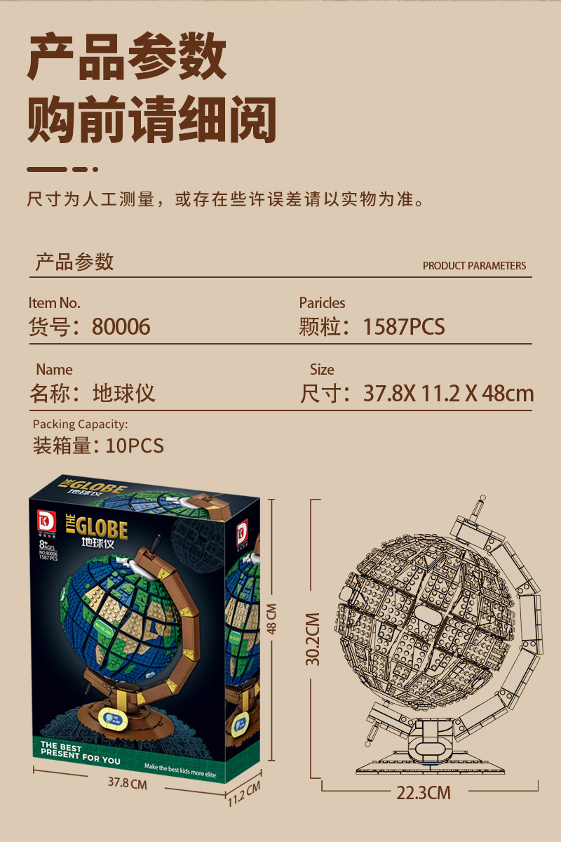 得客80006地球儀模型地図置物子供の祝日の益智は積み木のおもちゃの誕生日プレゼントをつづり合わせます。