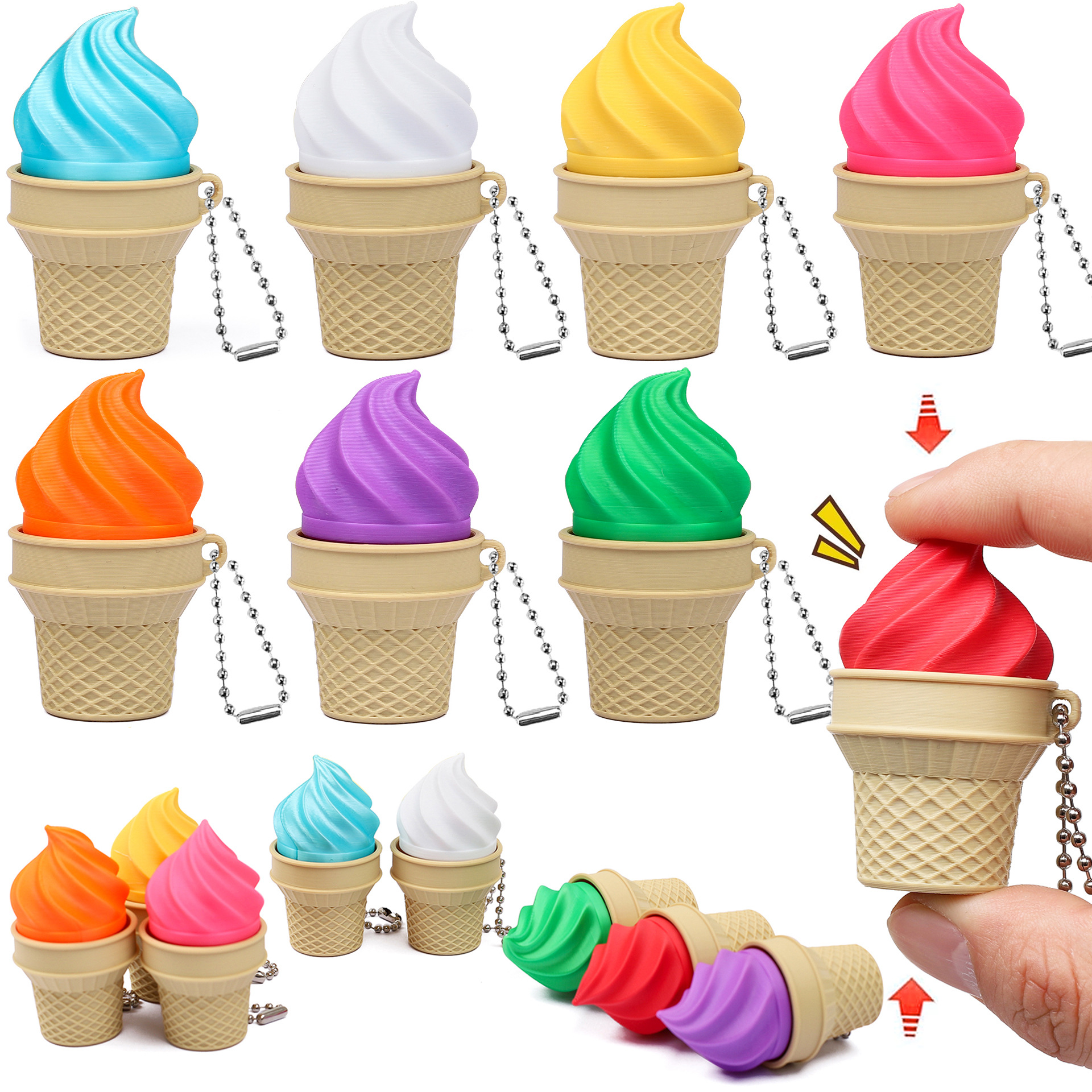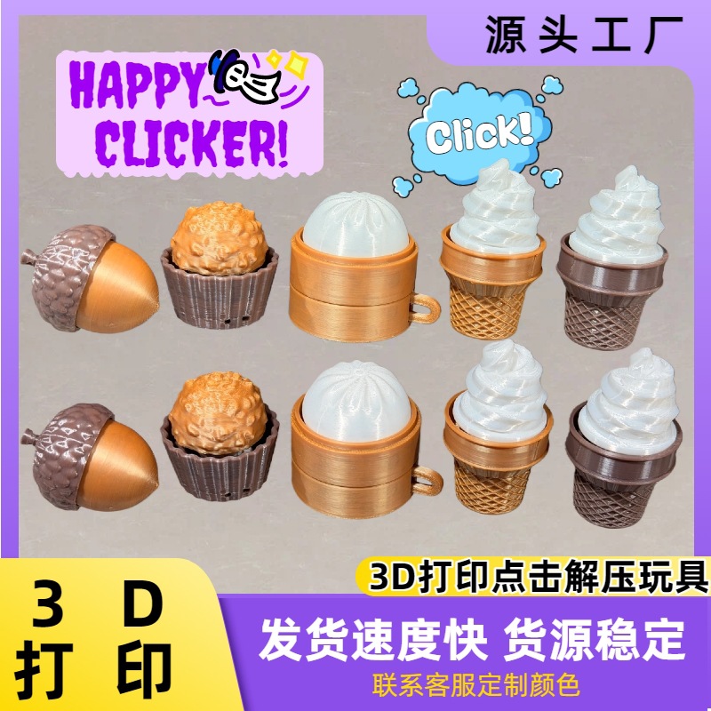 创意仿真3d打印冰激凌点击器冰淇淋甜筒钥匙扣背包挂件减压玩具