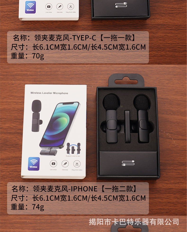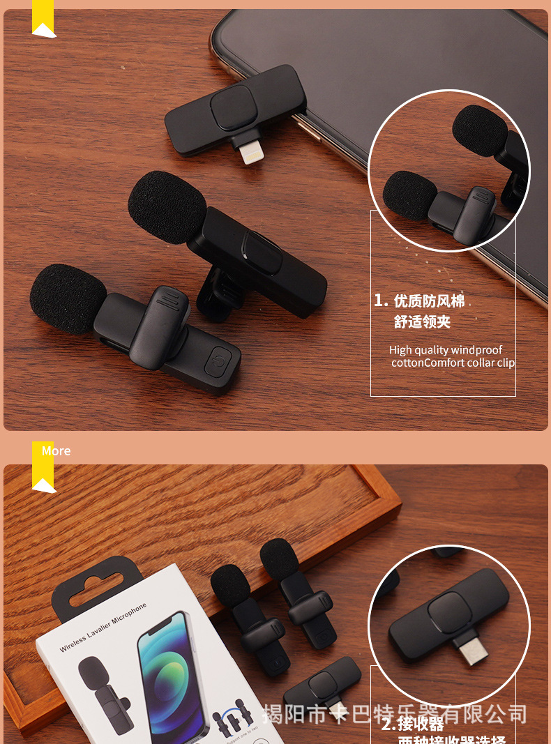 K8无线领夹麦克风收音直播录音降噪户外迷你话筒跨境耳机电商