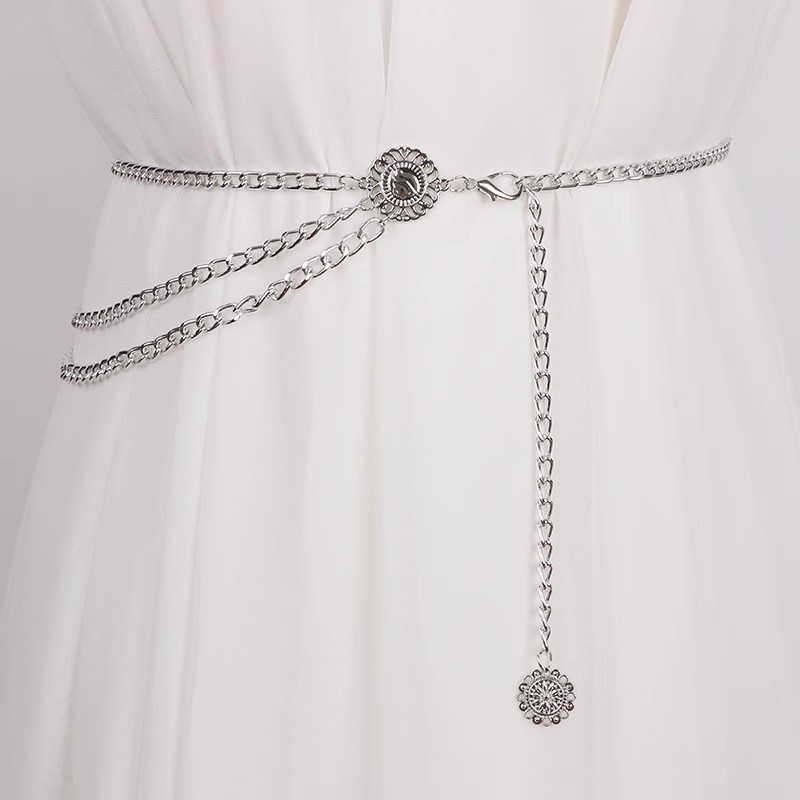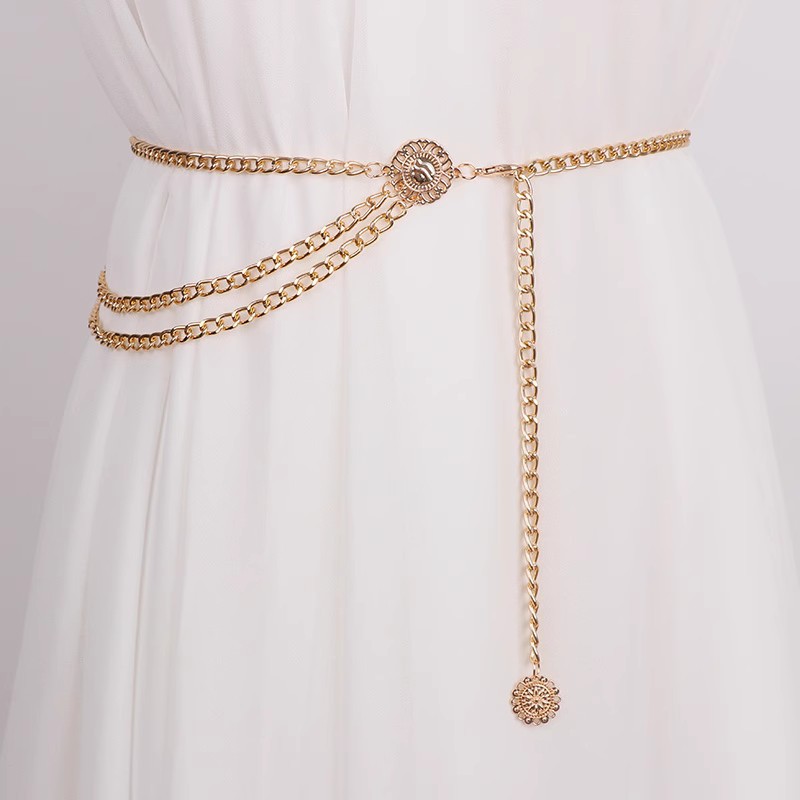 外国貿易雰囲気のある金属ひまわりウエストチェーン女性の調節可能なドレスウエスト装飾多層ハイエンドチェーンベルトアクセサリー