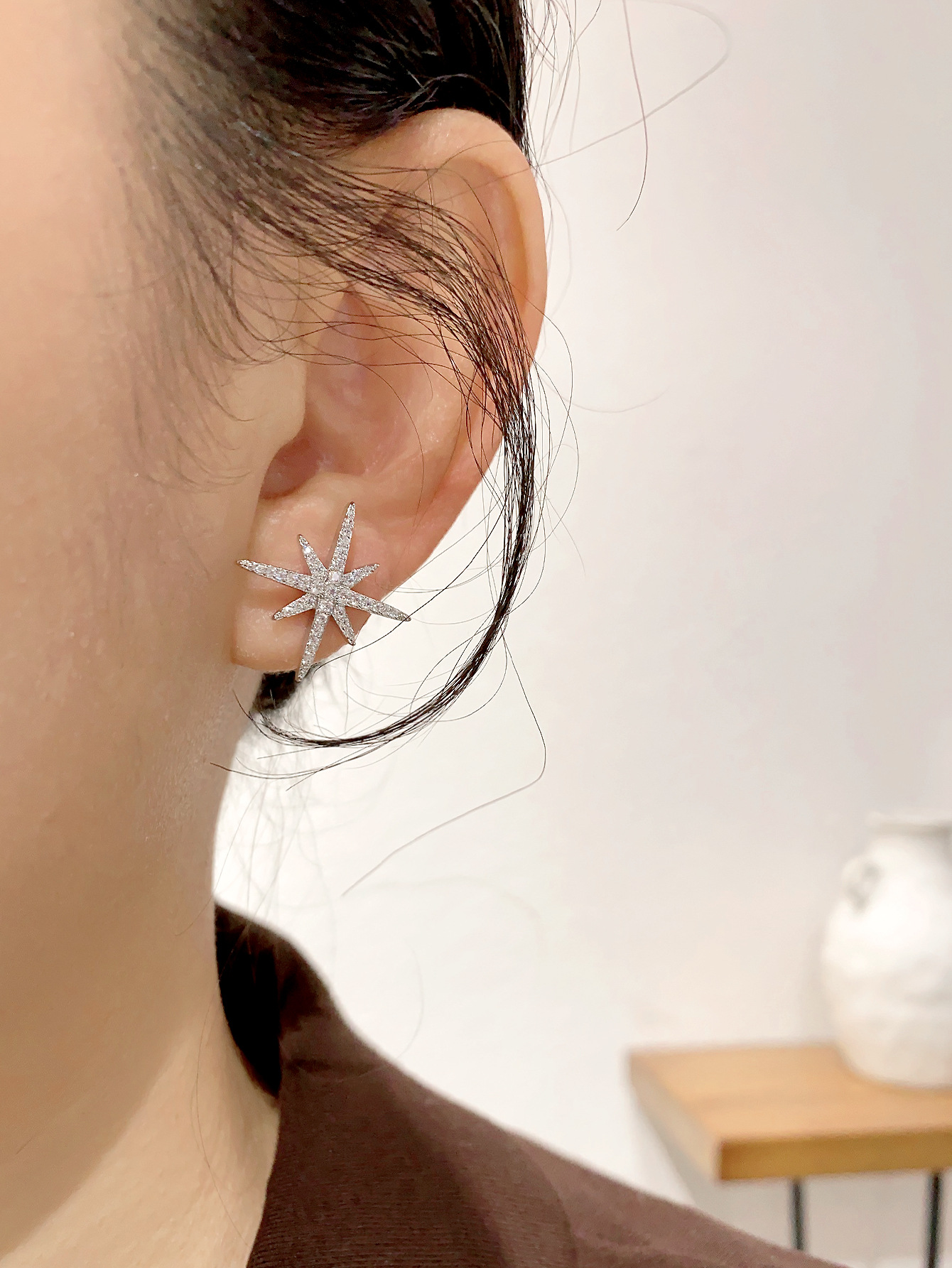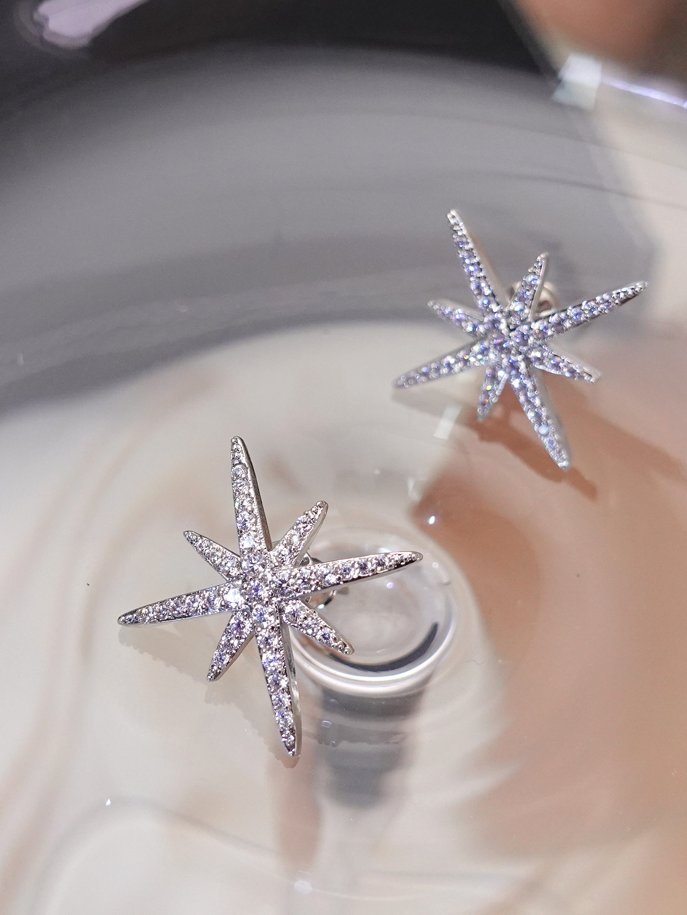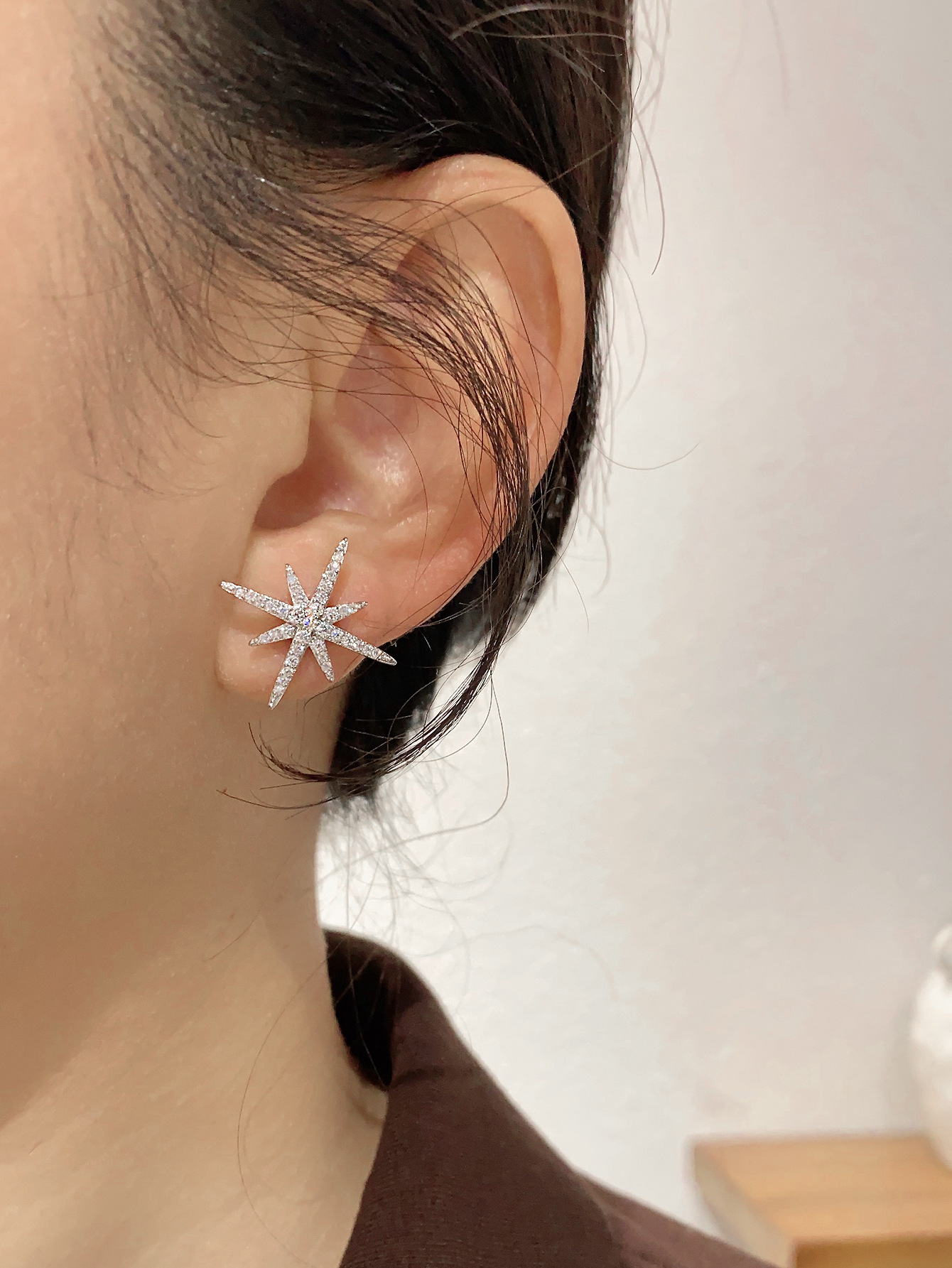 八芒星耳钉银针锆石精致高级感小众设计百搭时尚ins风耳扣耳饰星