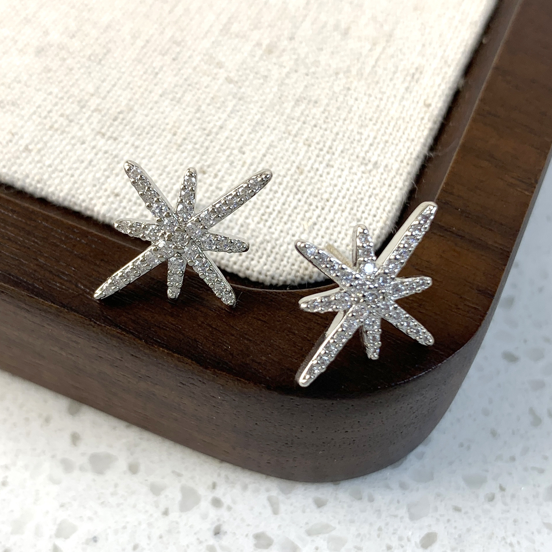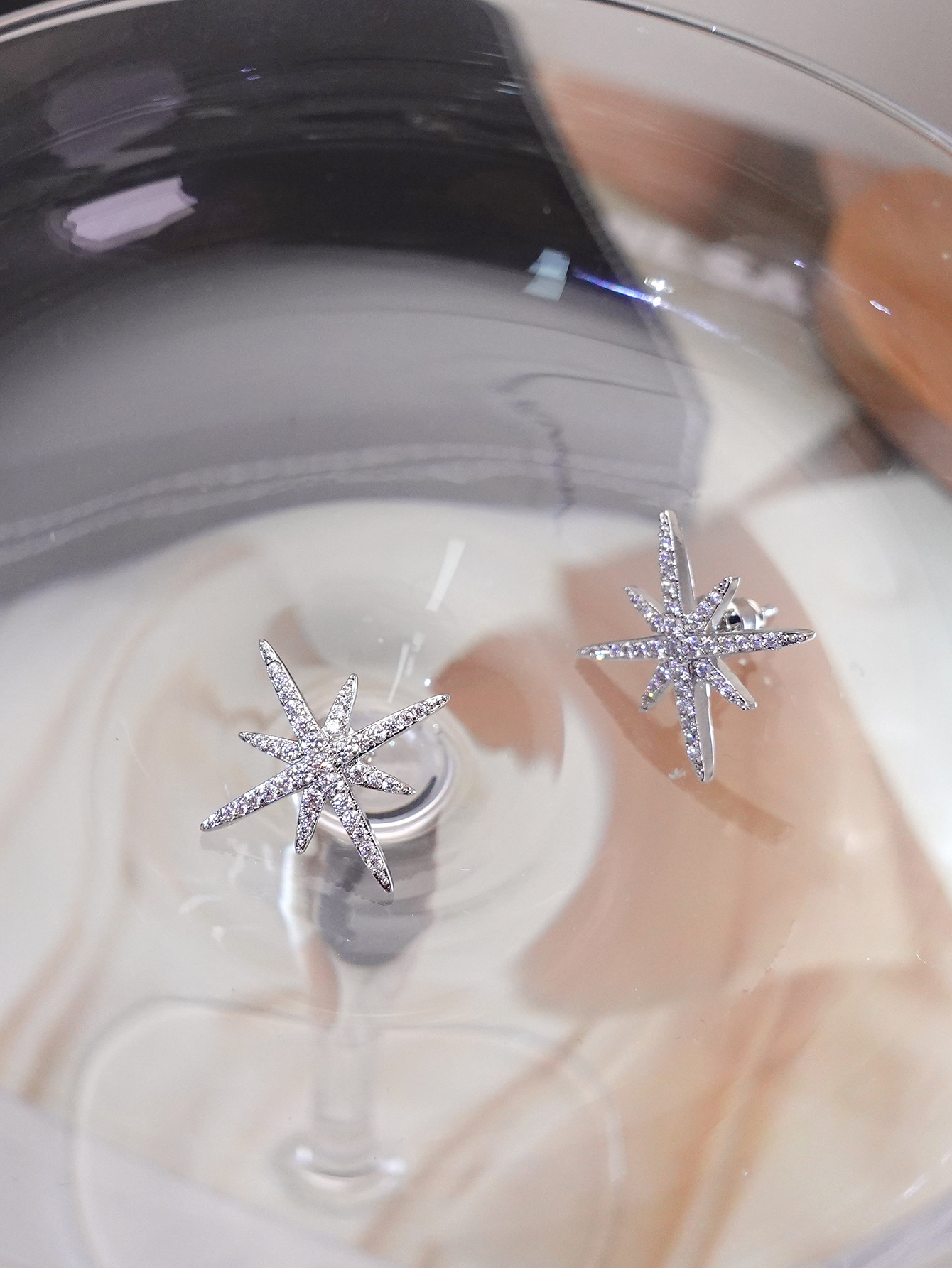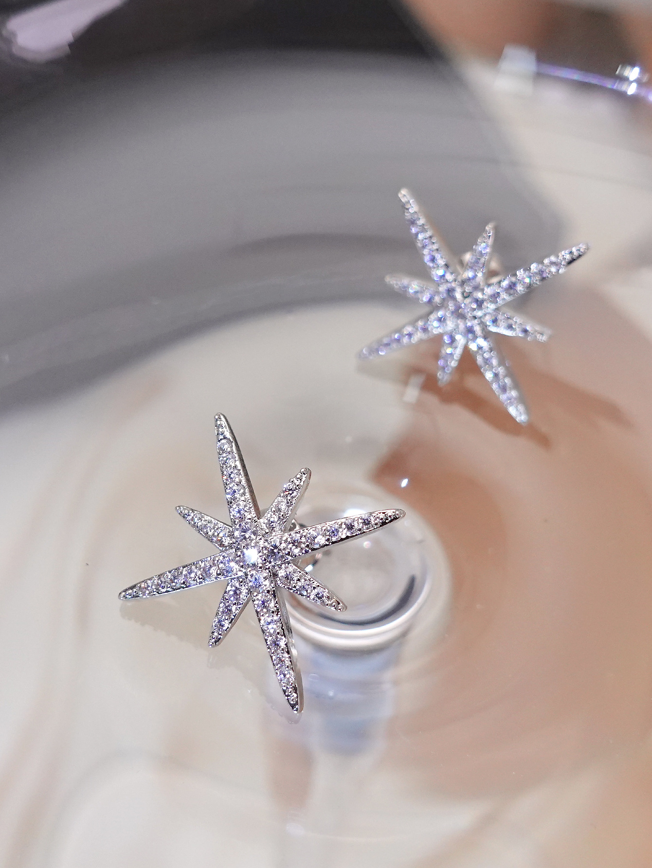 八芒星耳钉银针锆石精致高级感小众设计百搭时尚ins风耳扣耳饰星