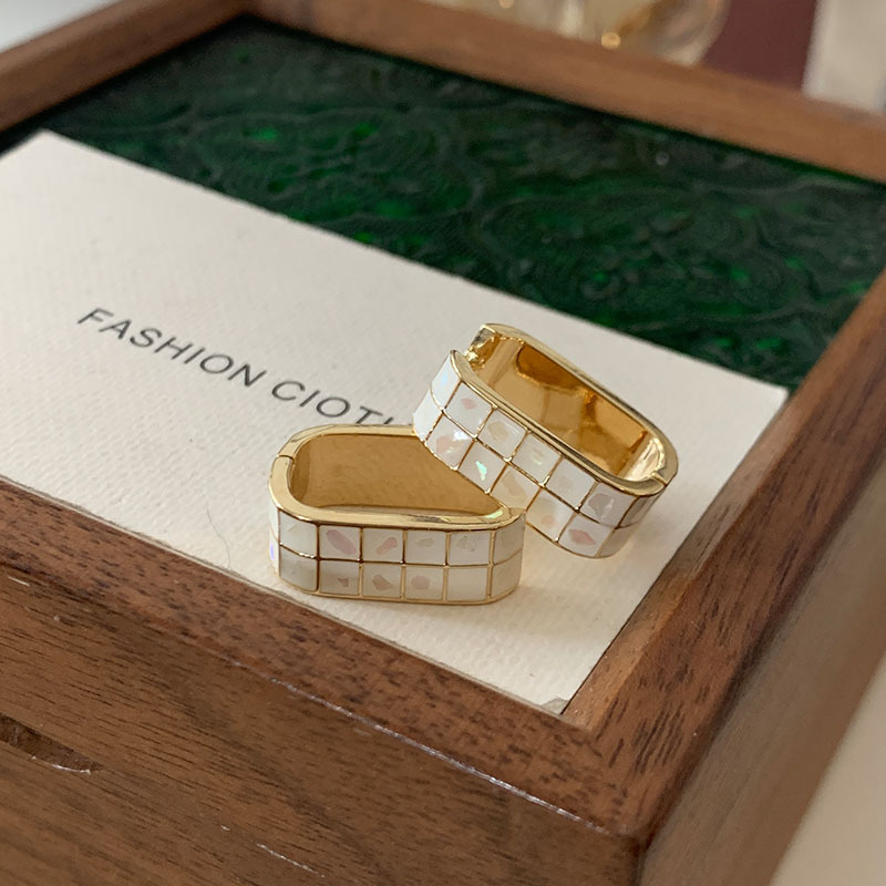 宽面白色方格耳环2025新款爆款高级感耳扣轻奢法式风小众设计耳饰