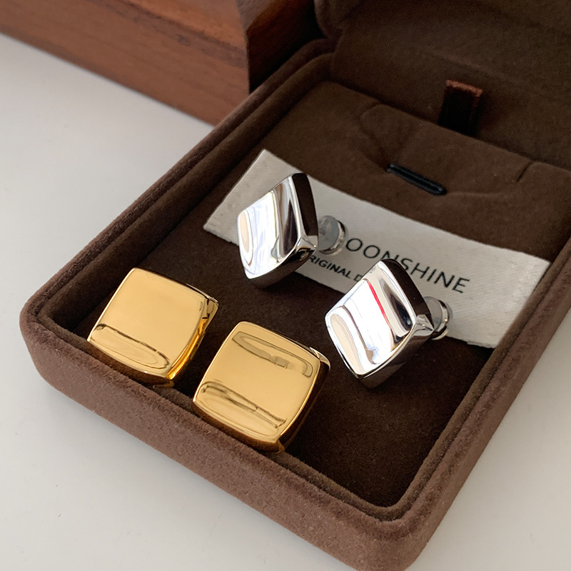 方形质感光面金属耳钉2025新款爆款高级感耳环轻奢简约法式风耳饰