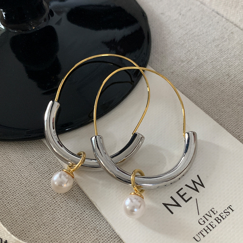 色の金属の耳輪のファッションの軽豪華な高級感の真珠のイヤリングの女性のフランスの気質の独特な幾何学の円形の耳飾り