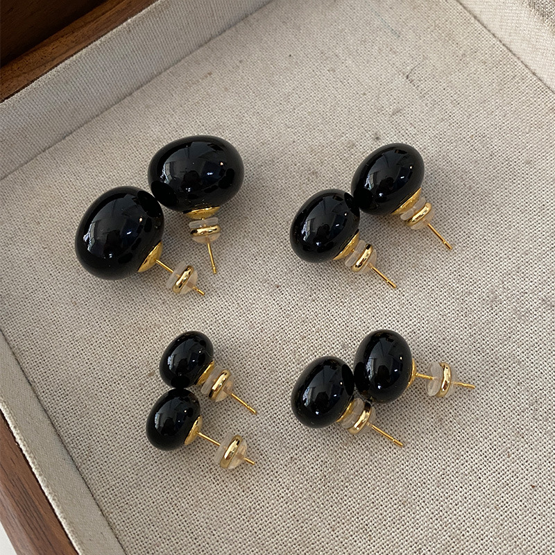 黒のフラット模造真珠のイヤリング、絶妙でコンパクトなデザイン、ニッチなイヤリング、女性用の社交界の女性の小さな香りの樹脂イヤリング