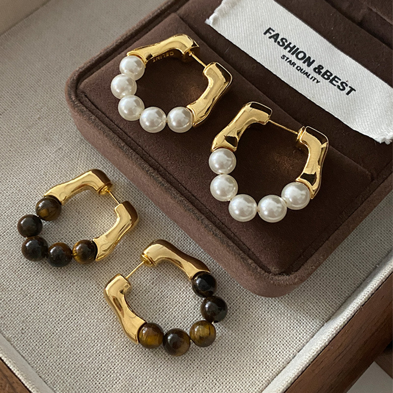 レトロな虎眼石真珠ピアス結婚花嫁のフランスイヤリング