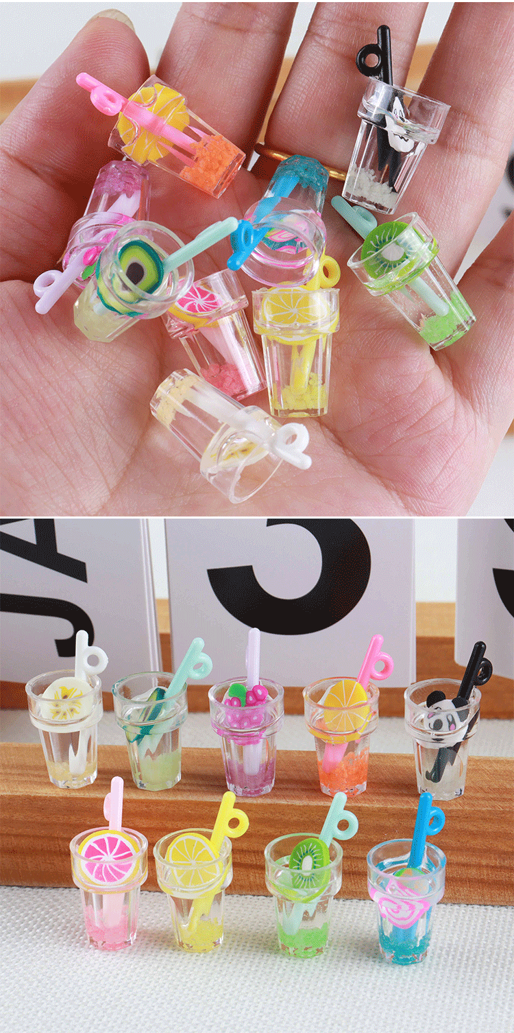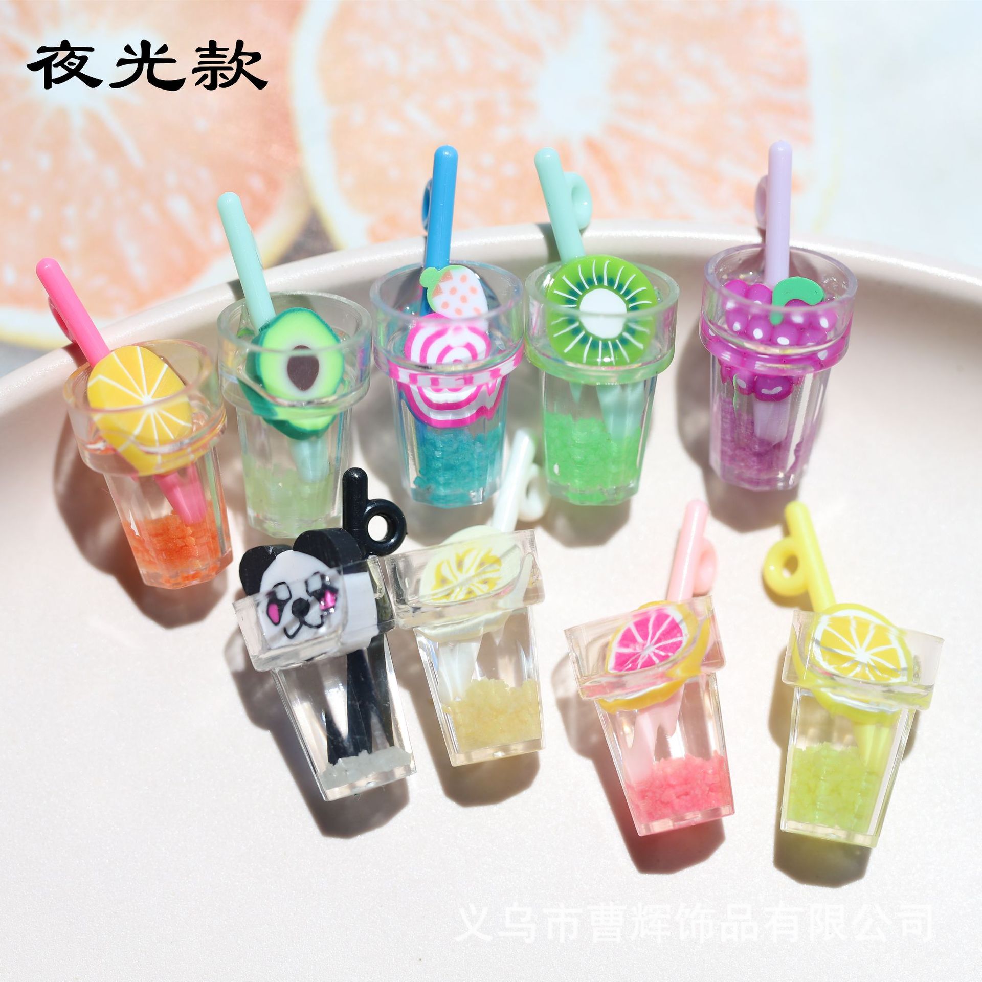 ネット赤果物片夜光ストローカップdiyシミュレーション立体飲料瓶ジュースカップイヤリングキーホルダーストラップ
