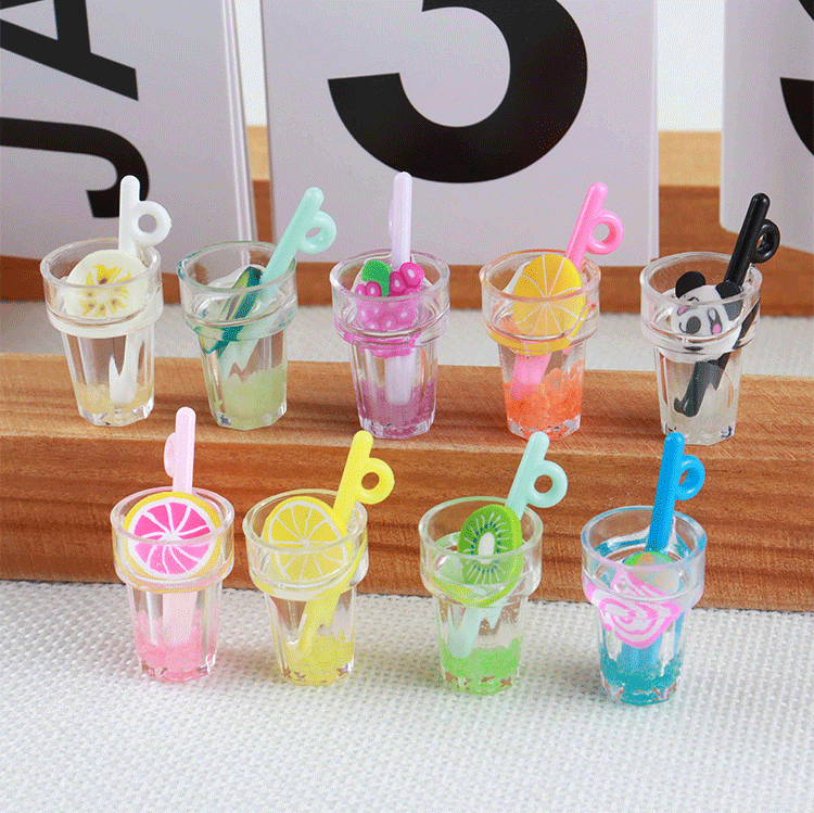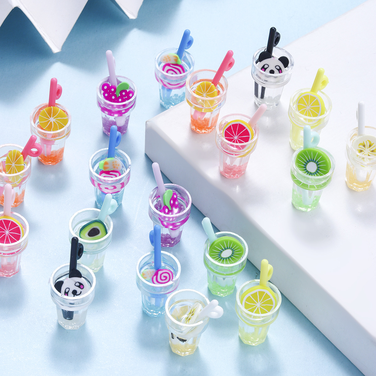 クリエイティブミニストローカップシミュレーションフルーツドリンクジュースカップジュエリーアクセサリー手作りイヤリングキーホルダーペンダント