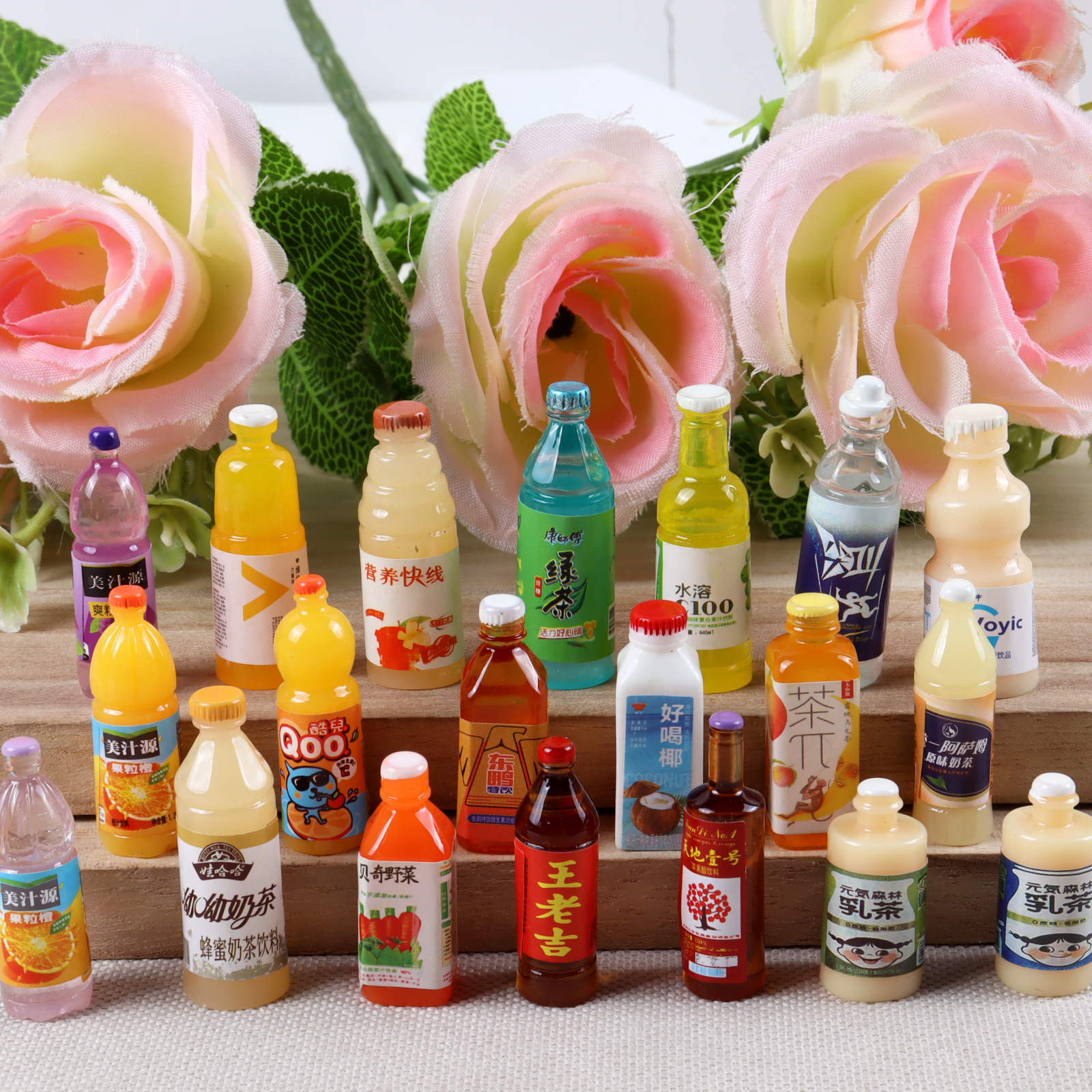 迷你饮料瓶子微缩小酒瓶树脂配件diy食玩便利店材料小夜灯配件